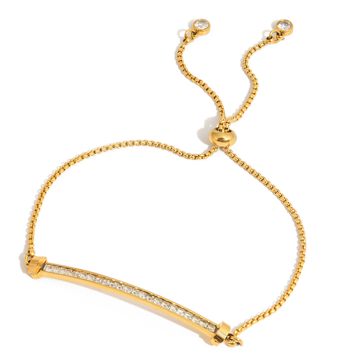 18K gold stainless steel white rhinestone smiling face pull-out bracelet