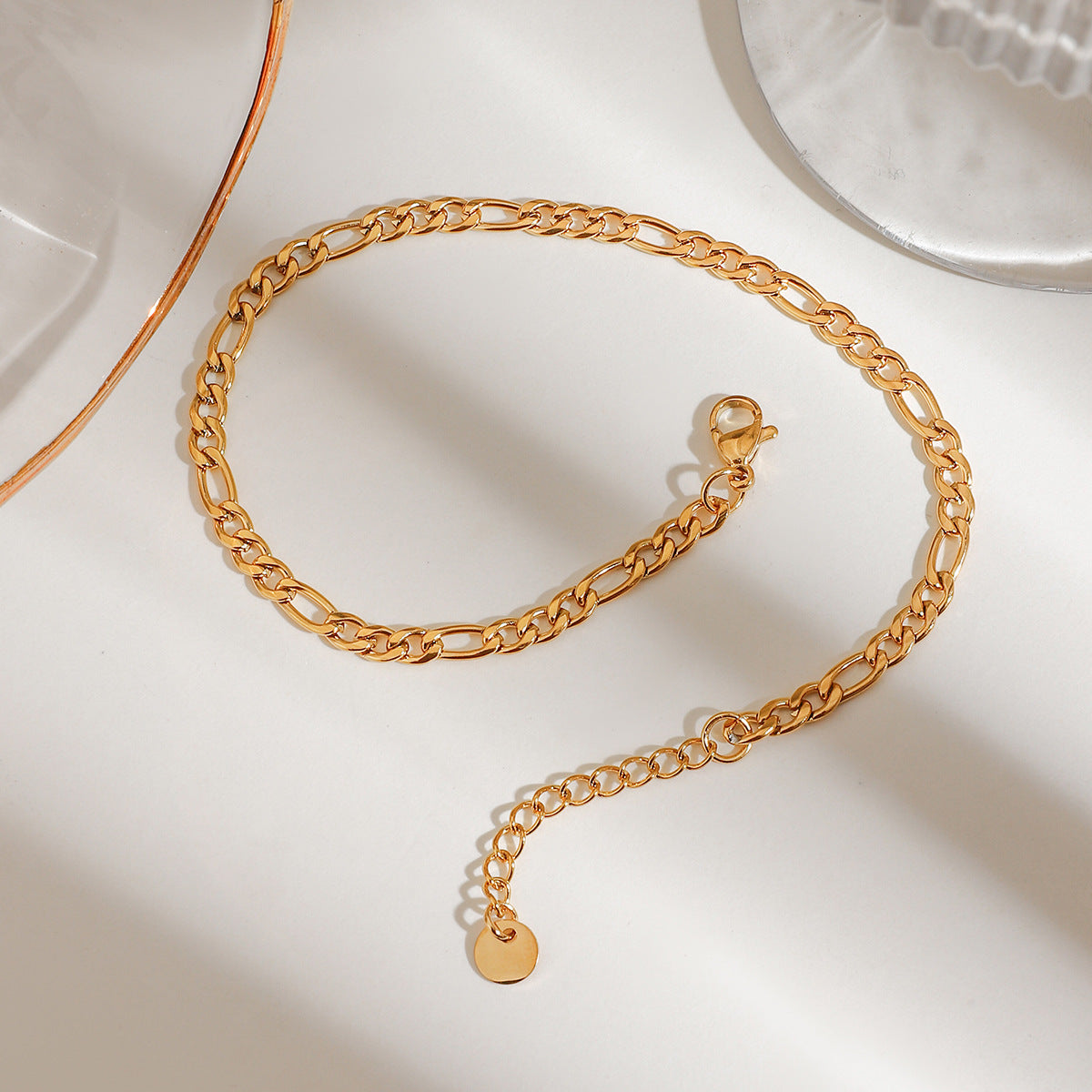 Fashionable and trendy, classic and versatile, seaside and beach vacation style, 18K stainless steel Figaro chain foot chain