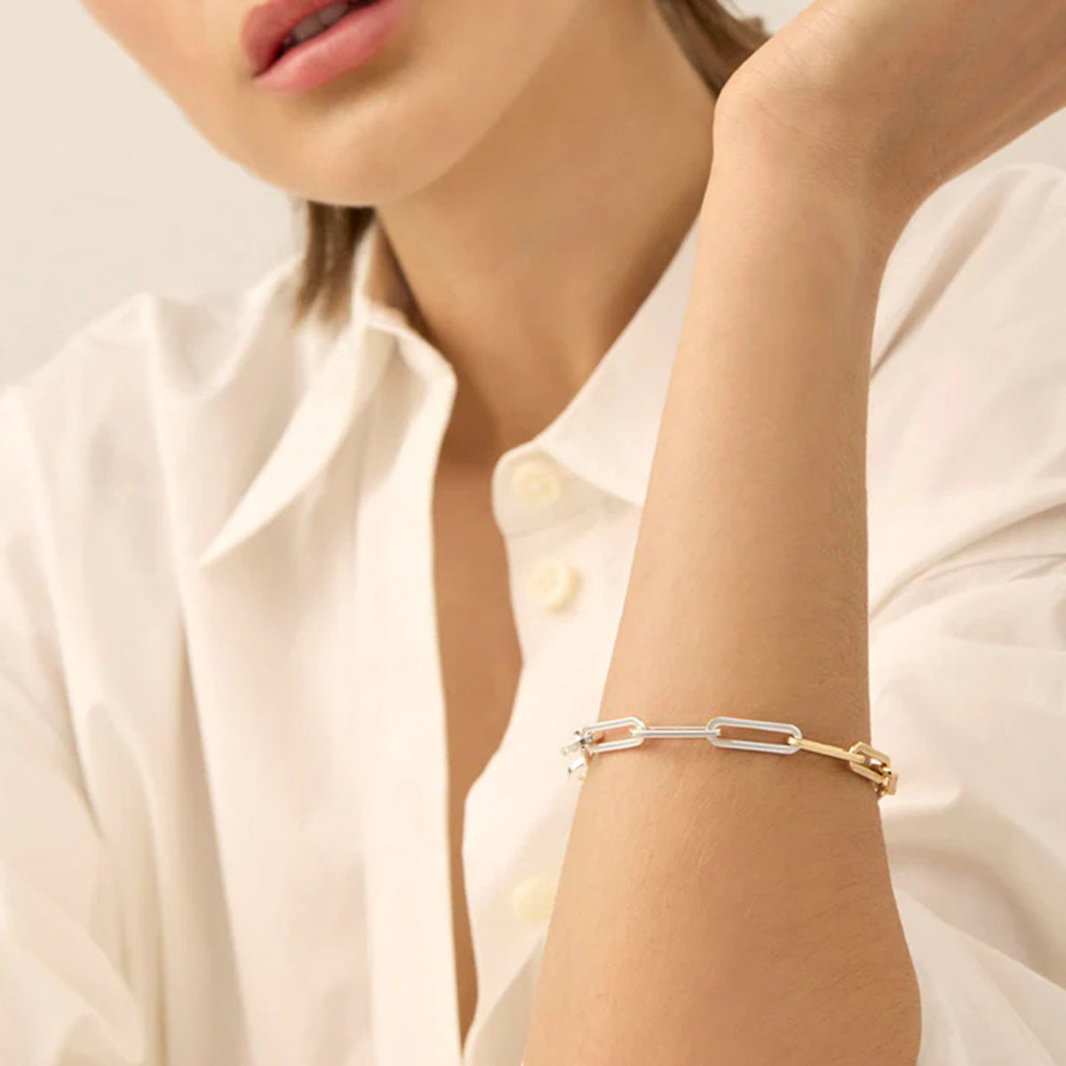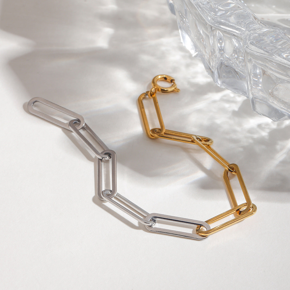 Stainless steel gold and silver color-matched paperclip chain bracelet