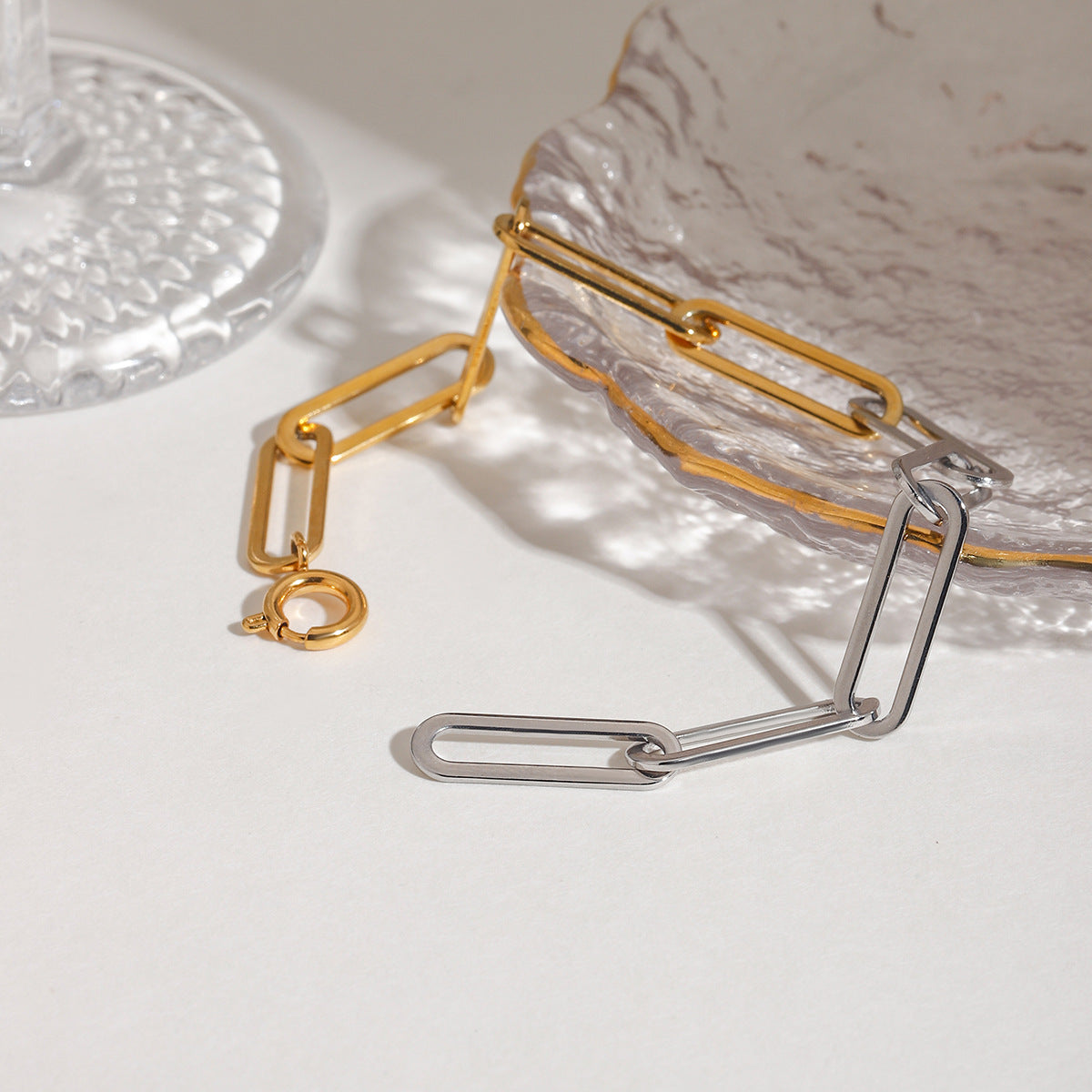 A simple, fashionable, light luxury and high-end stainless steel, gold and silver color-matched paperclip chain bracelet