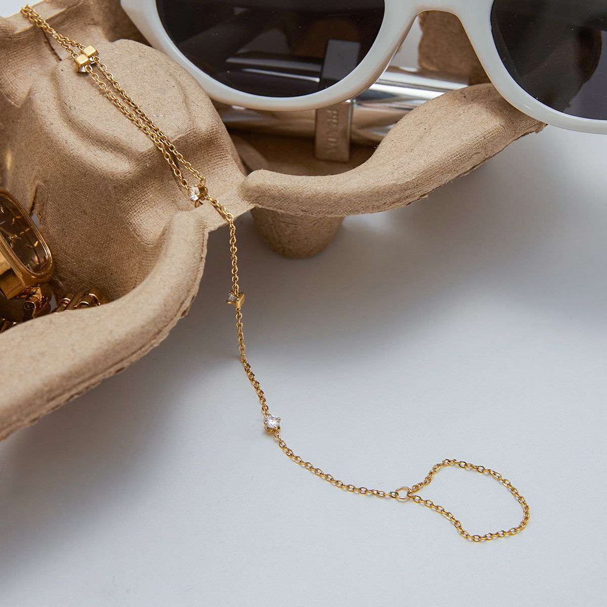 Stainless steel zircon finger-linked bracelet
