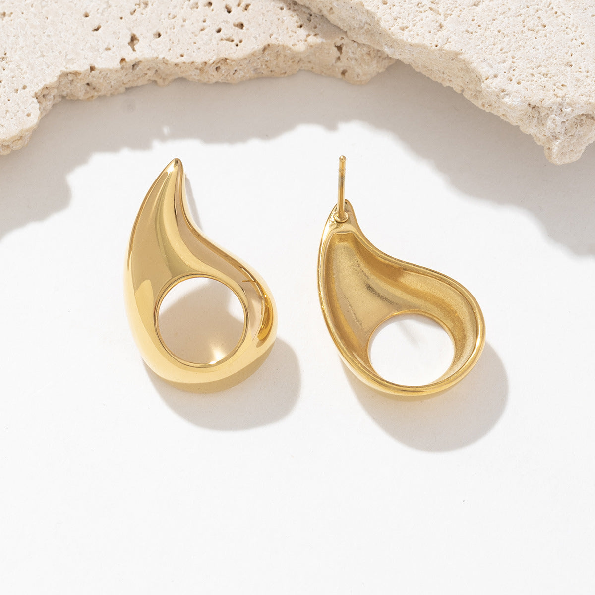 Fashionable, simple, elegant and high-end golden stainless steel perforated teardrop earrings