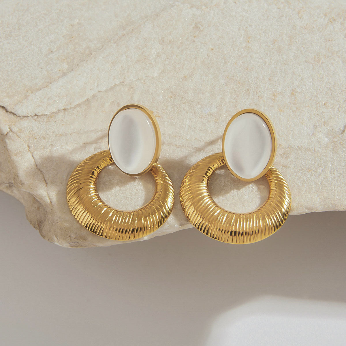 A pair of fashionable, simple, exquisite, light luxury and high-end stainless steel cat-eye stone earrings