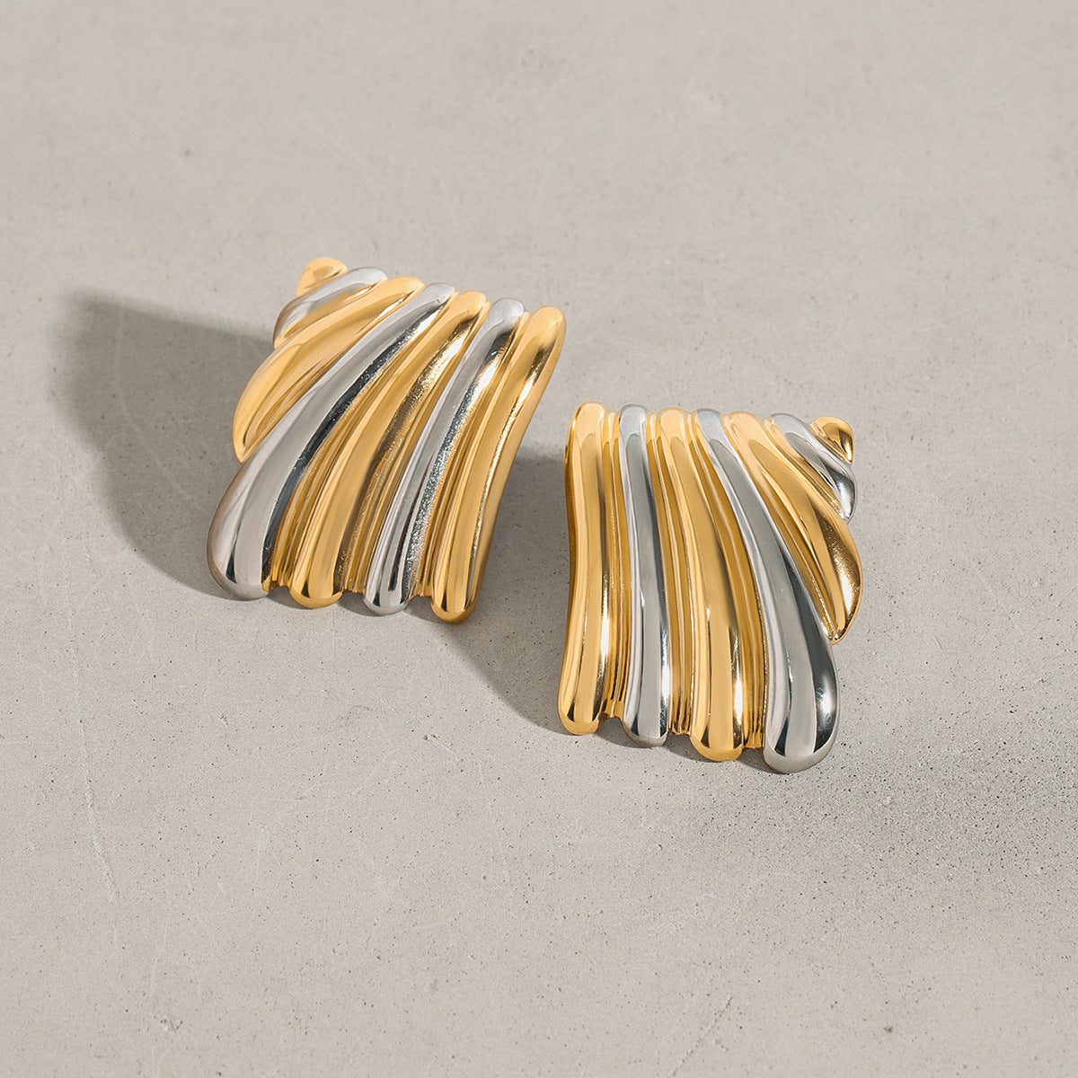 Fashionable, simple, light luxury and high-end, stainless steel, gold and steel color color-blocked stud earrings