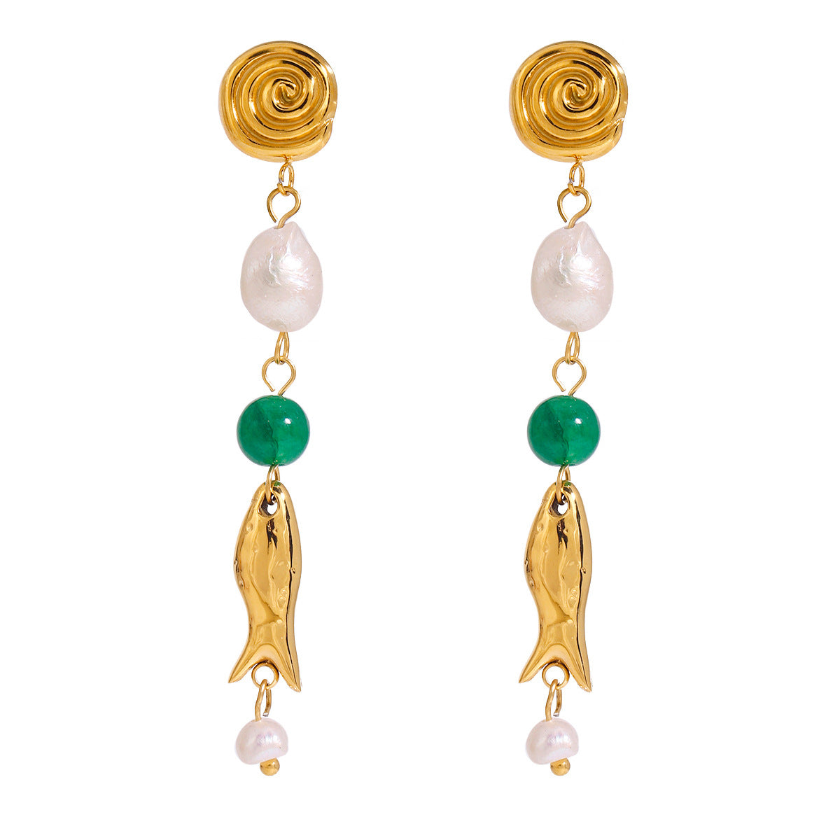 Fashionable and high-end, niche design, non-fading stainless steel freshwater pearl beaded earrings