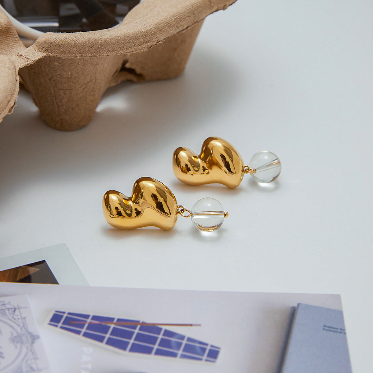 Simple design, light luxury and high-end feel, golden stainless steel glass bead pendant earrings