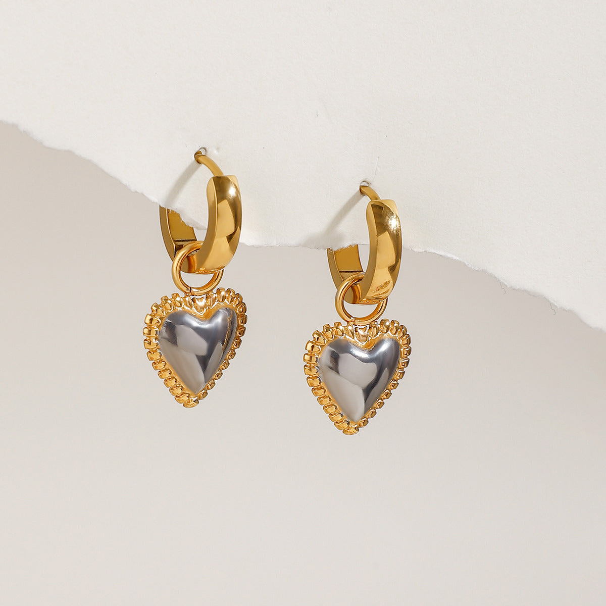 Stainless steel gold and silver color-matched heart-shaped pendant earrings