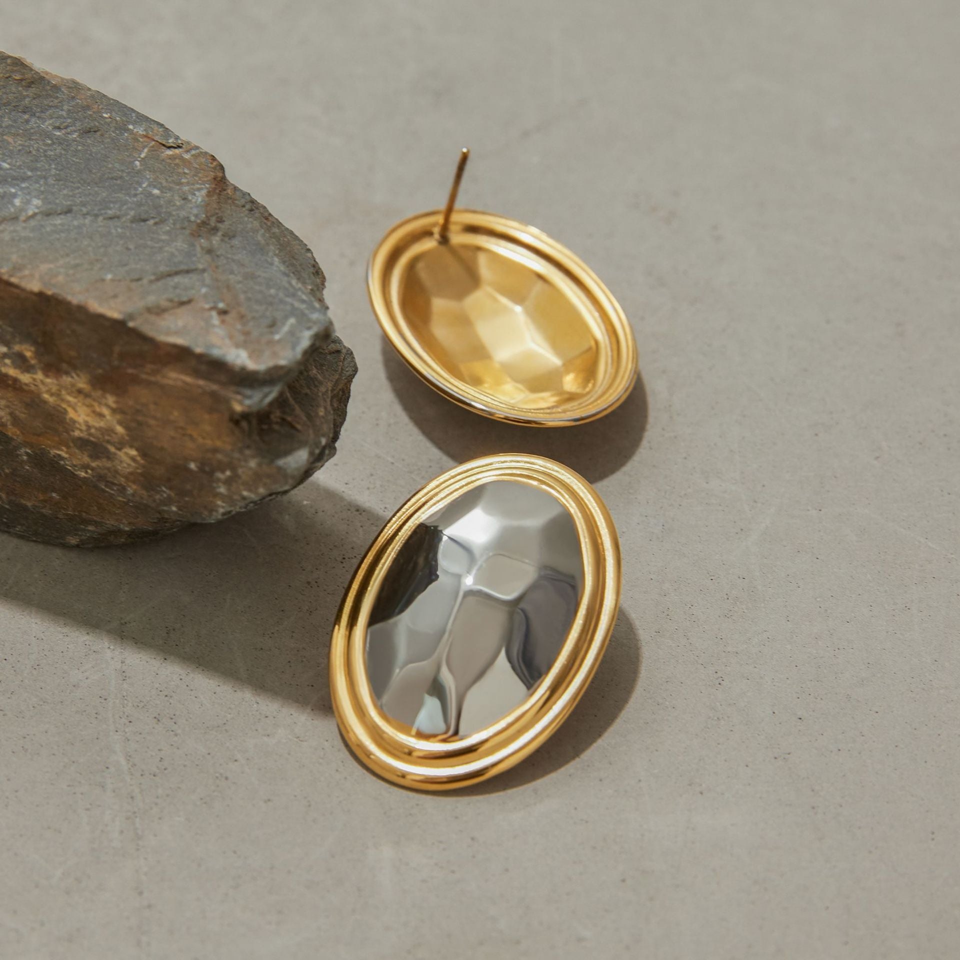 Fashionable, simple, versatile and practical stainless steel gold and silver color-matched stud earrings for daily use