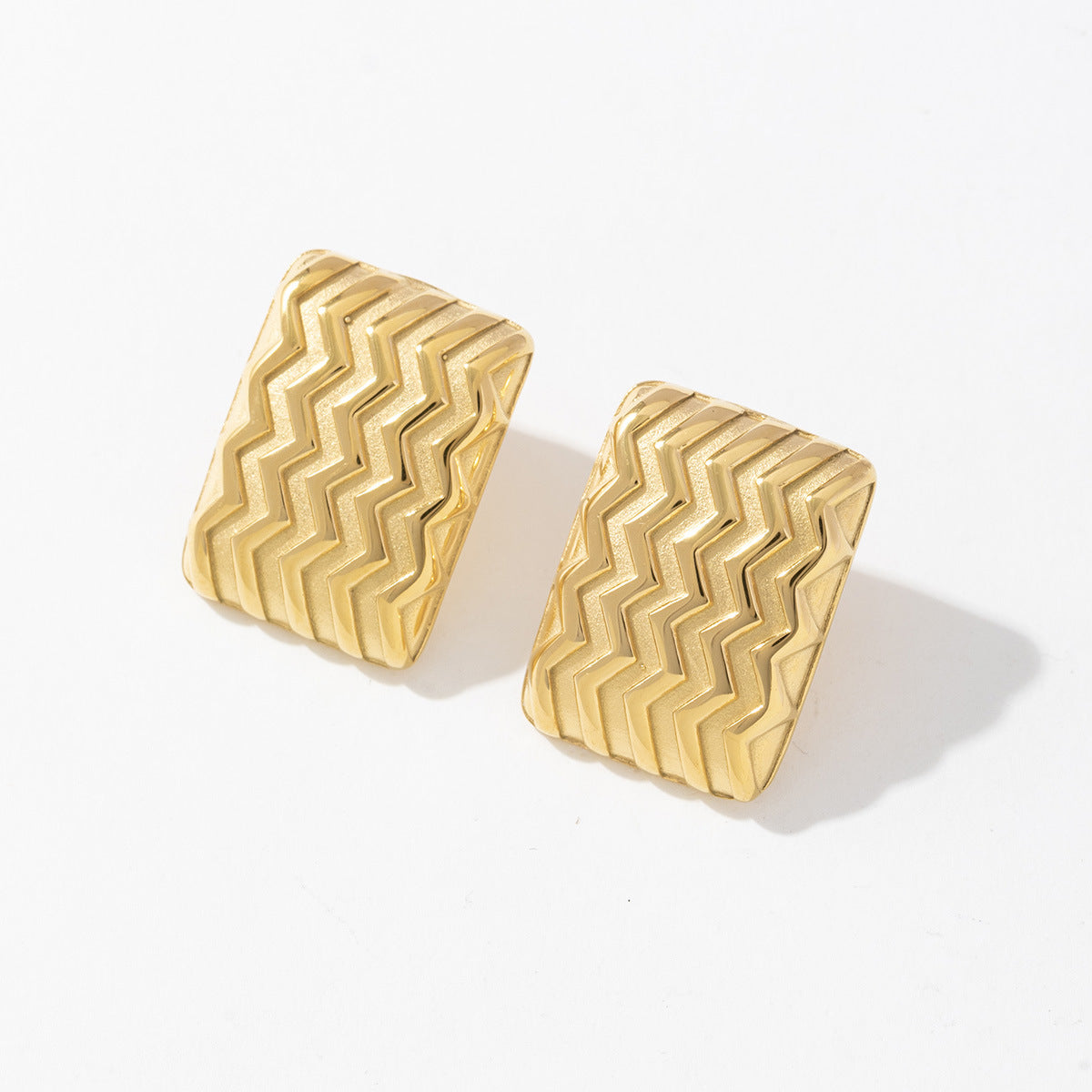 Simple, fashionable and niche design, non-fading stainless steel gold square wavy brushed earrings