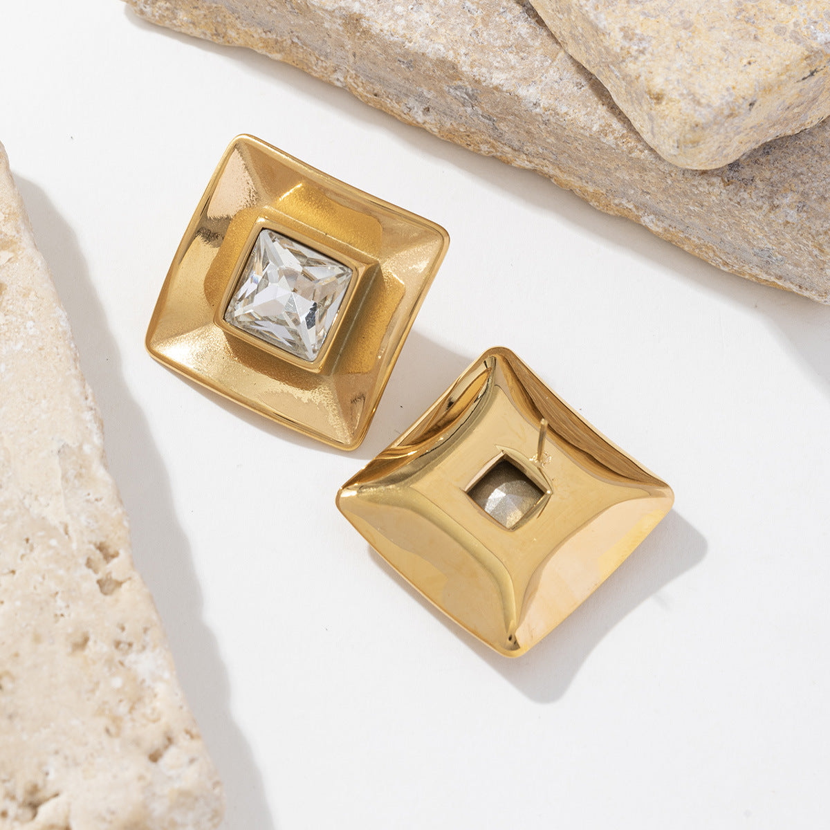 Simple, fashionable, light luxury, retro and high-end stainless steel gold square zircon earrings