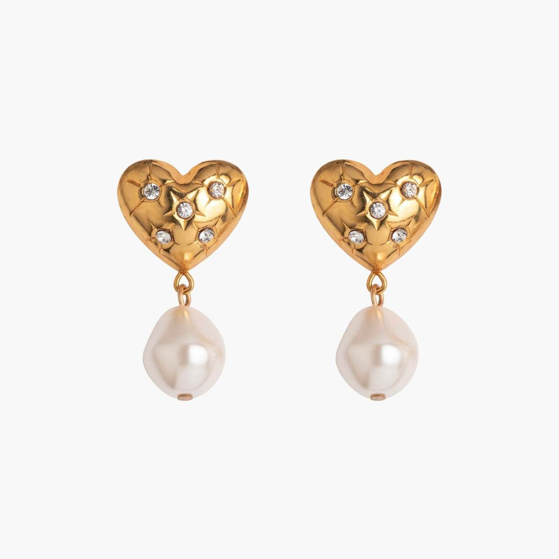 Stainless steel heart-shaped pearl zircon earrings