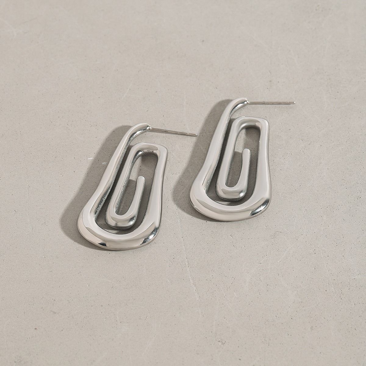 Fashionable, trendy, niche design, light luxury and high-end stainless steel silver spiral earrings