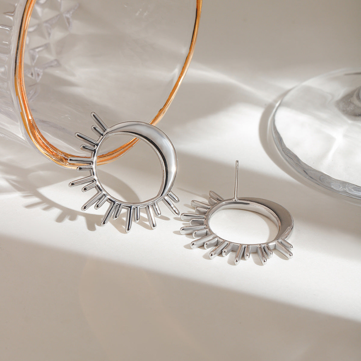 Simple, versatile, fashionable and niche design, non-fading stainless steel sun and moon earrings