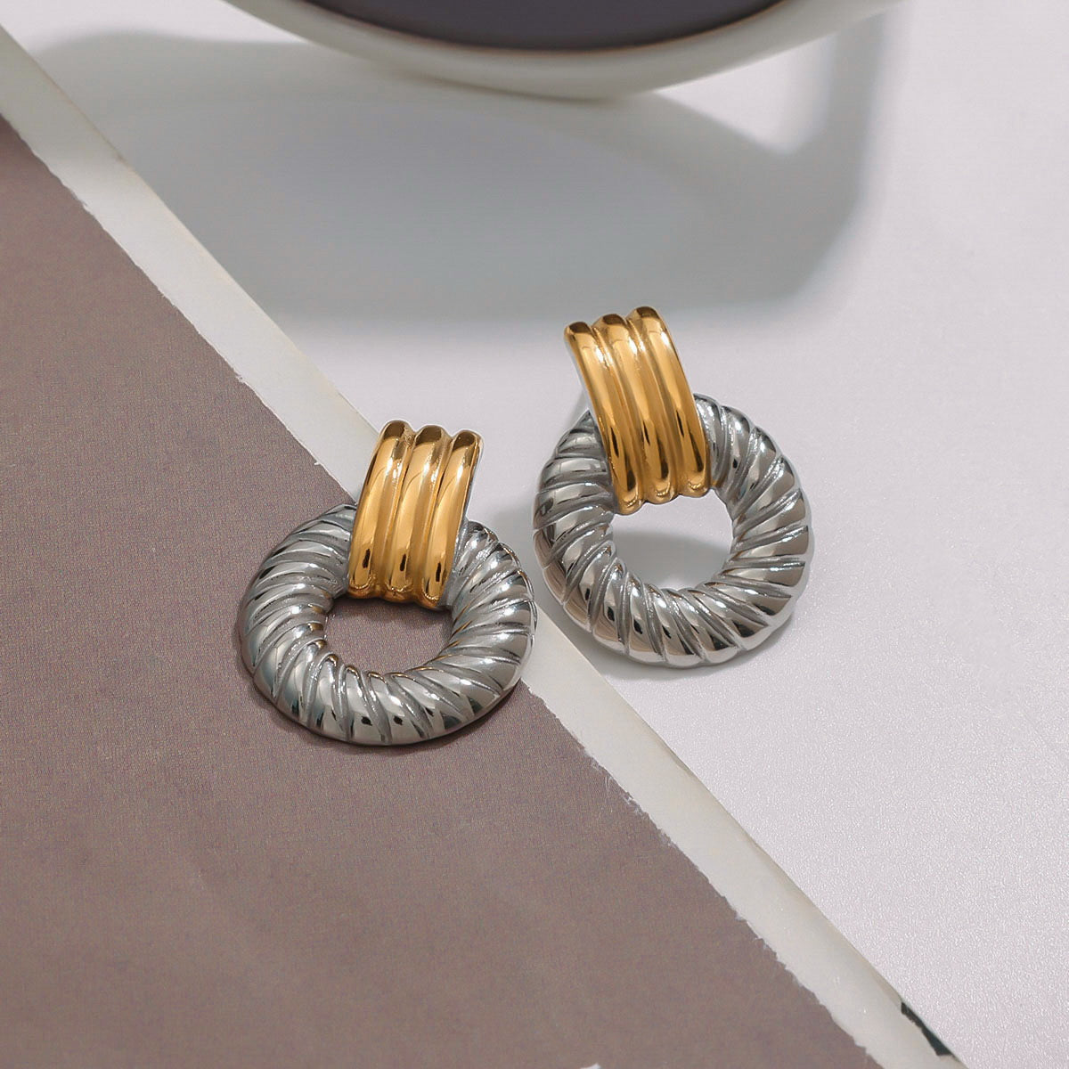 Fashionable, simple, light luxury and high-end, niche design stainless steel gold and steel color block earrings