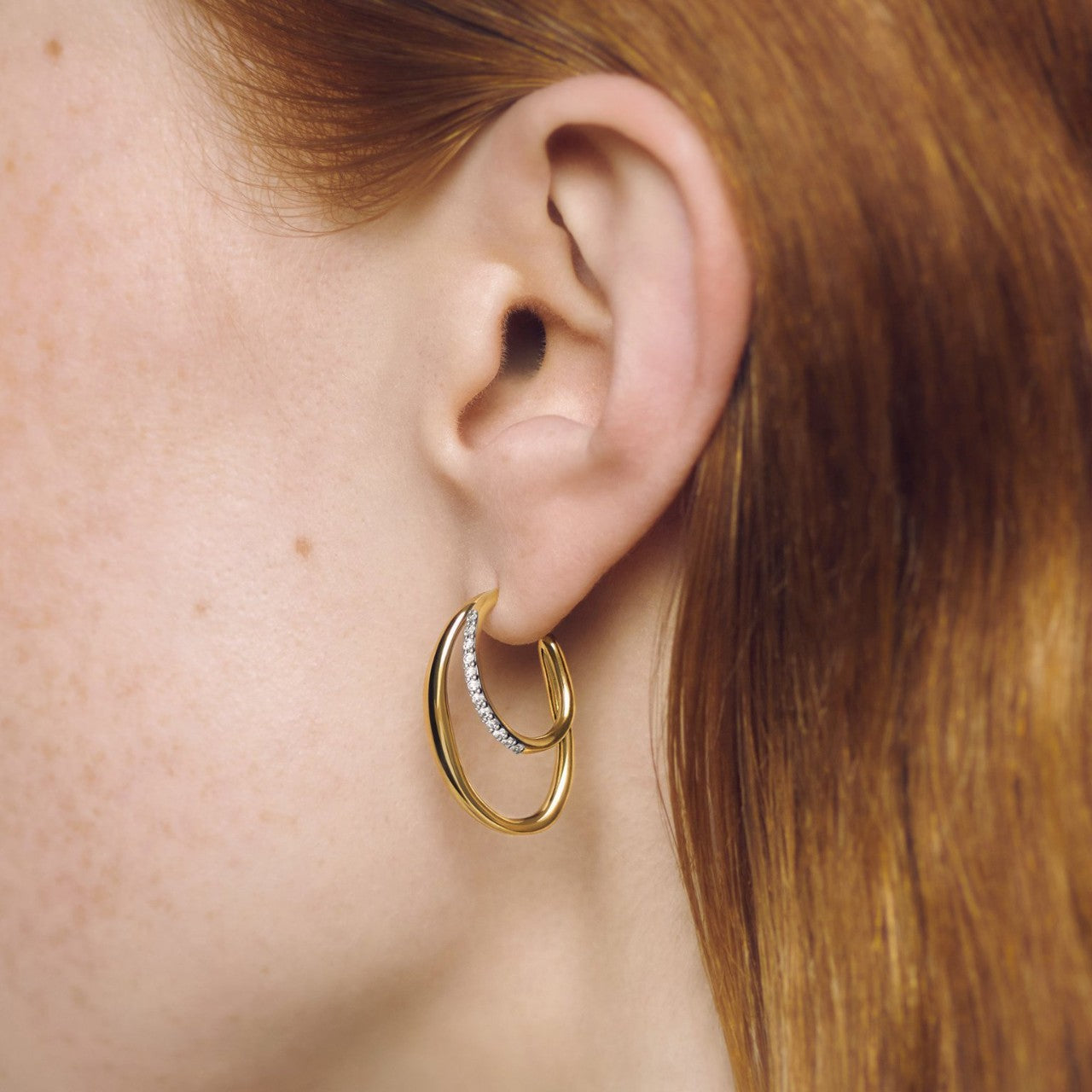 Fashionable and simple design sense, niche design stainless steel zirconium-encrusted C-shaped earrings