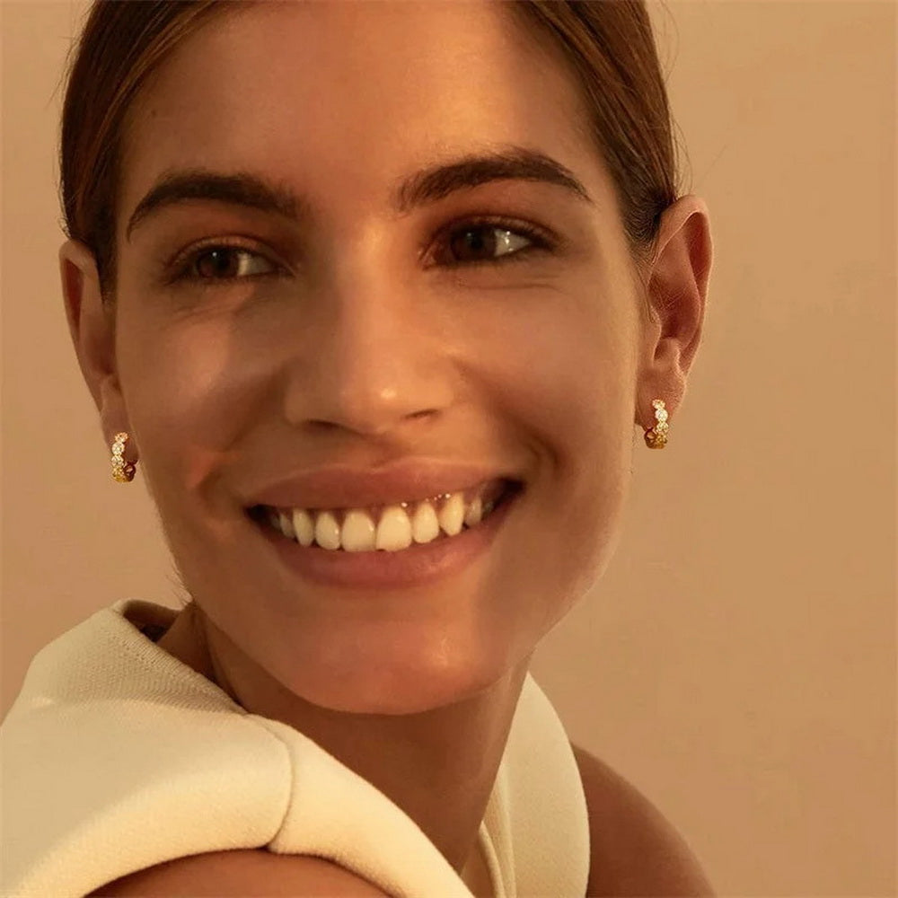 French niche design, fashionable commuting, simple and exquisite. White zircon full diamond hollowed-out round mini copper ear buckles