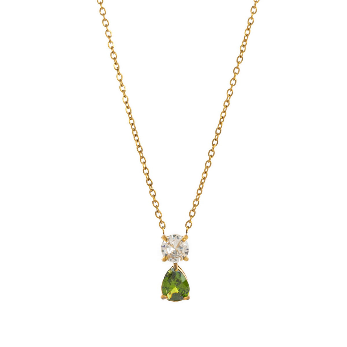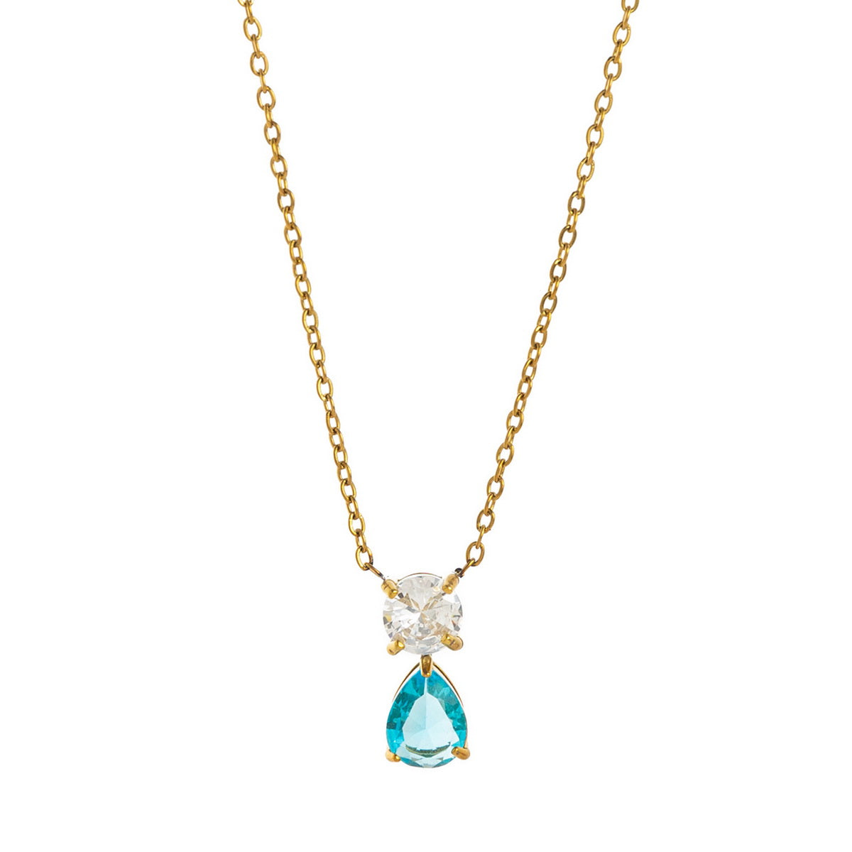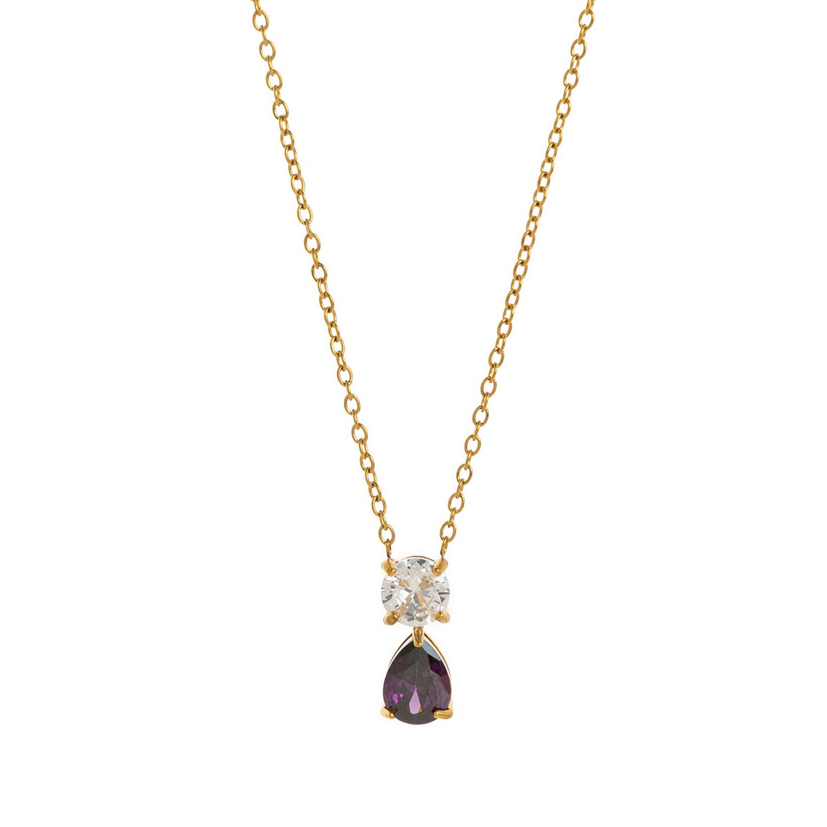 Stainless steel 18K gold 12 birth stone zircon necklace