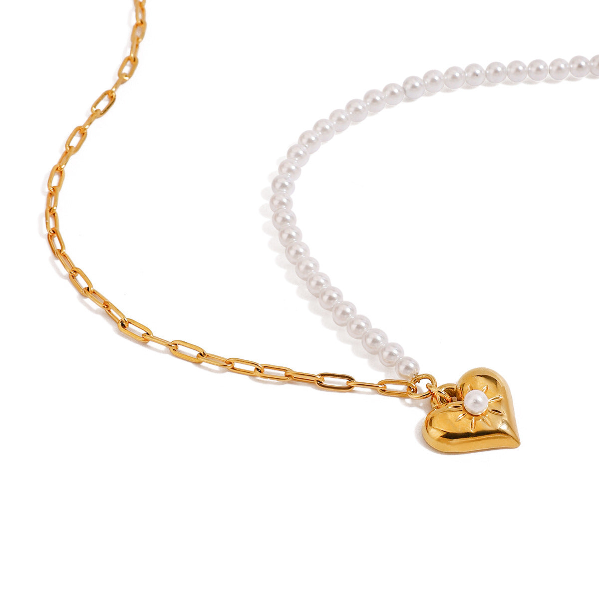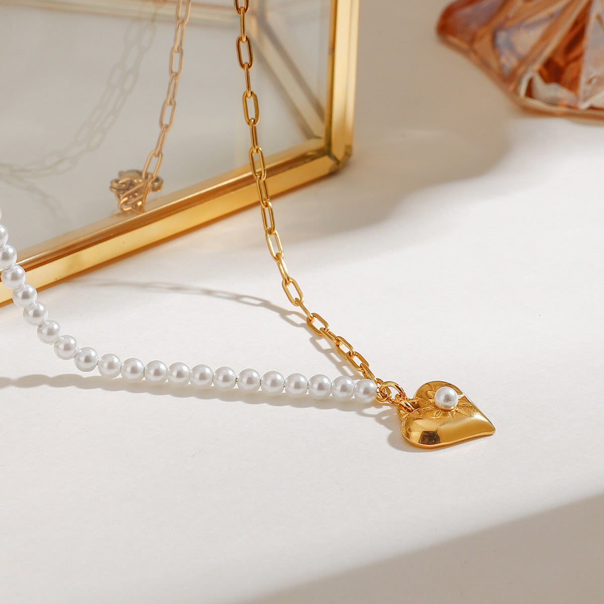 Stainless steel chain, pearl chain, heart-shaped pendant necklace