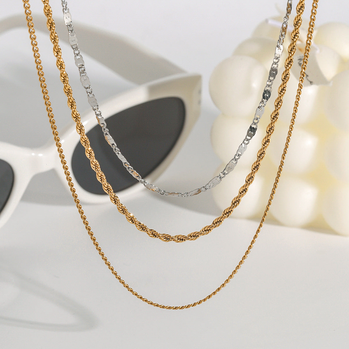 A multi-layered stainless steel necklace with a fashionable, simple and high-end feel that does not fade