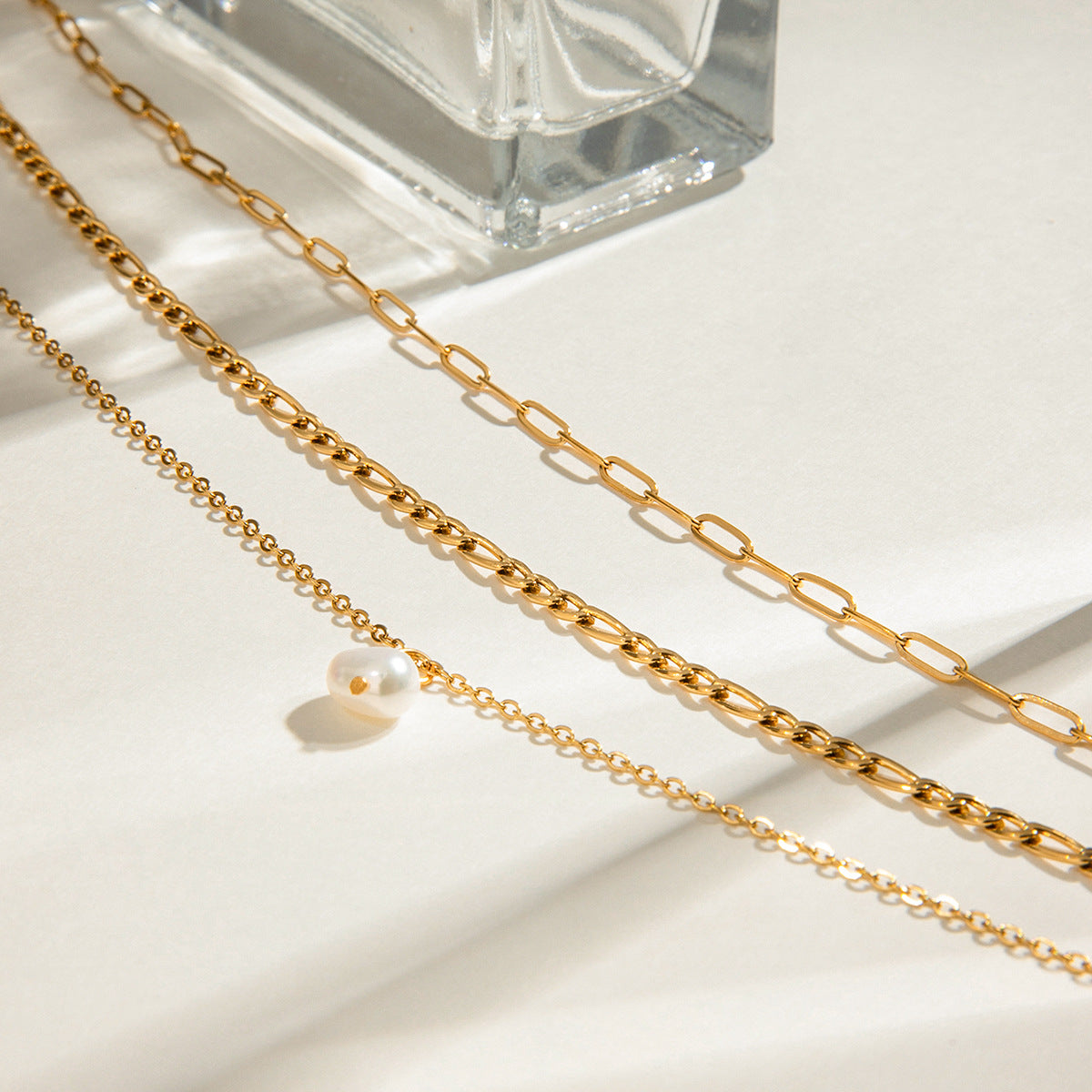 Practical, versatile, high-end, non-fading stainless steel pearl multi-layered necklace, collarbone chain