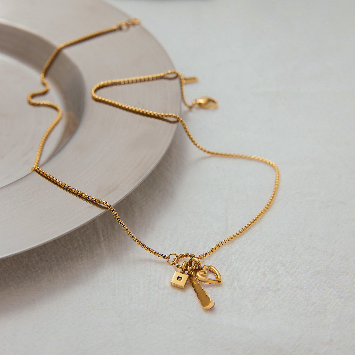 A fashionable, sweet and simple design, stainless steel pink zircon heart necklace that does not fade