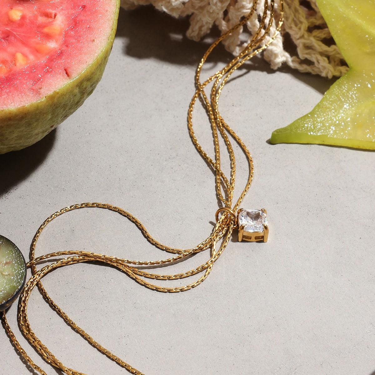 Stainless steel square zircon pendant four-layer chain necklace