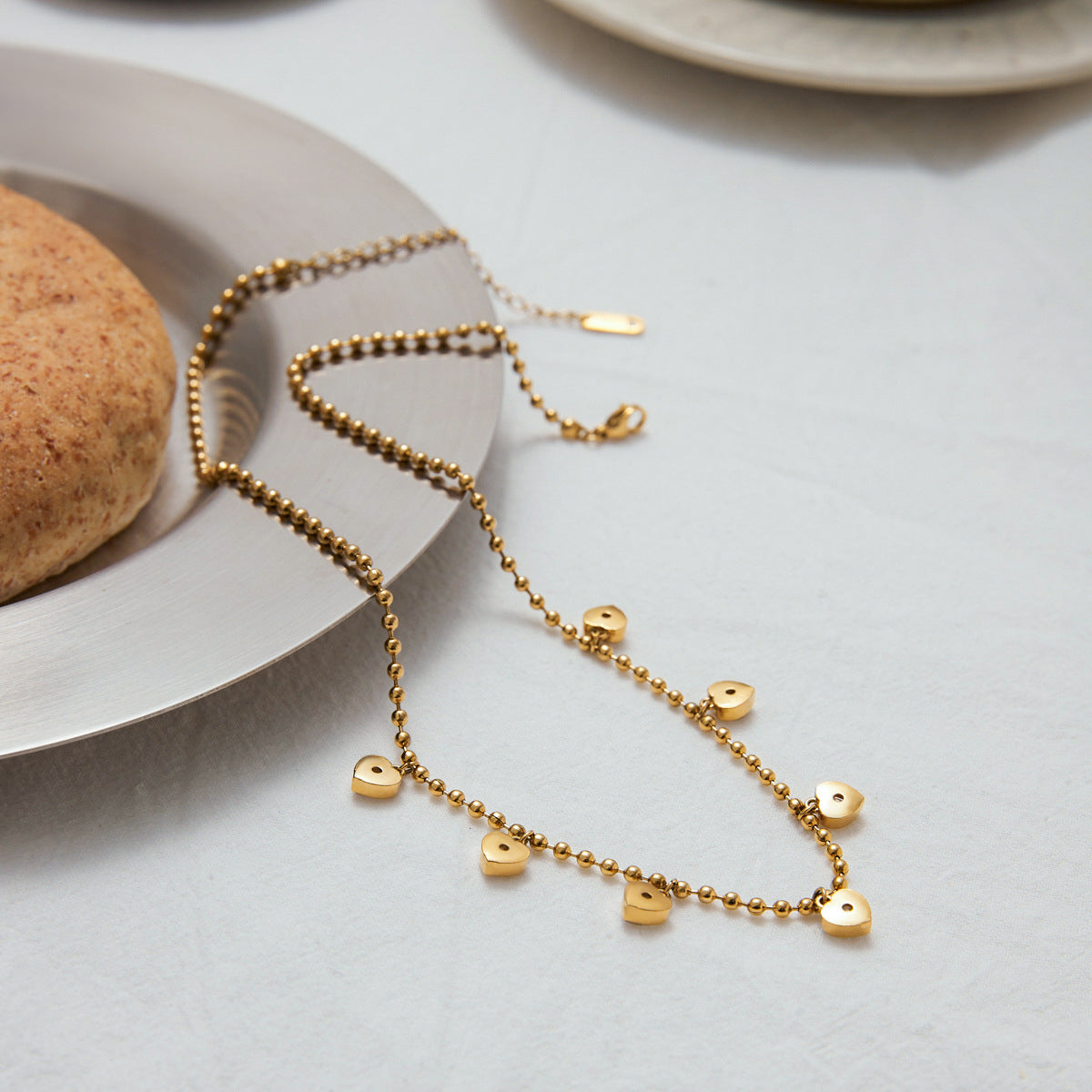 Fashionable design, elegant and practical golden stainless steel zircon heart-shaped necklace, collarbone chain
