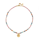 Simple and fashionable design, light luxury and retro stainless steel sunflower pendant, natural stone beaded necklace