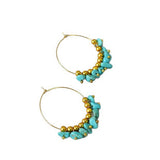 Simple, fashionable and individual design, retro style, irregular turquoise crushed stone bead circle earrings