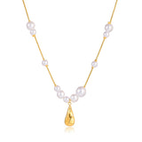 Stainless steel water drop pendant pearl imitation necklace