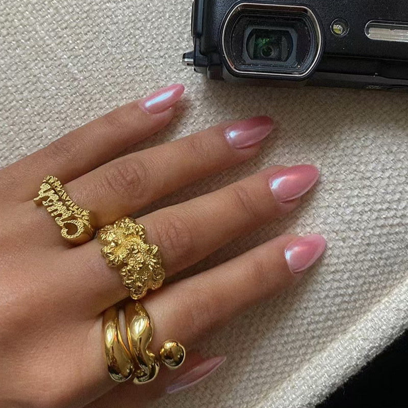 A fashionable, simple, versatile and practical 18K gold stainless steel spiral three-layer smooth ring