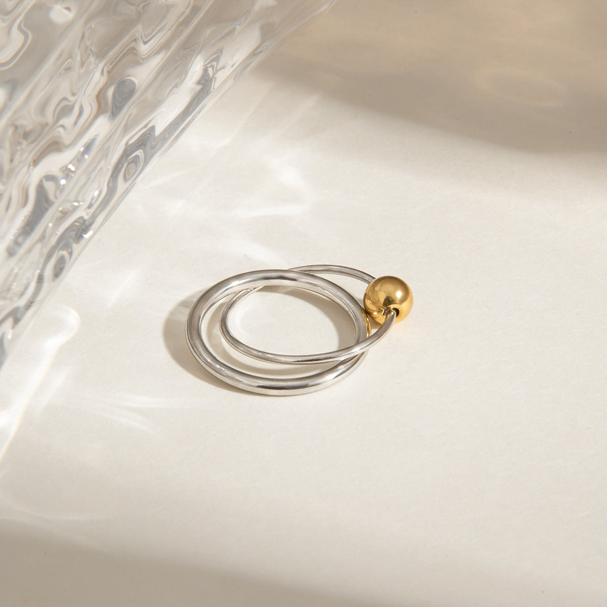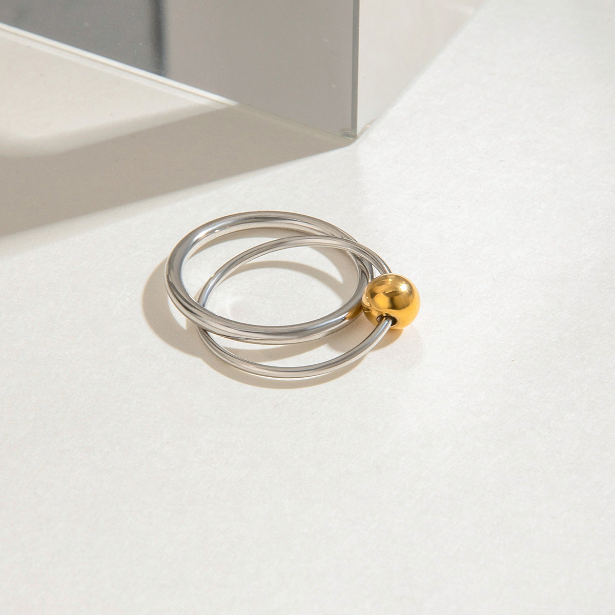A fashionable, individual, retro and niche design stainless steel gold and silver two-ring ring