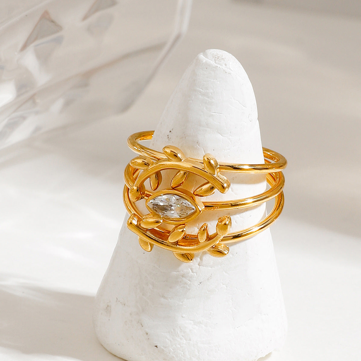 Practical, versatile, light luxury and high-end, non-fading stainless steel diamond ring stackable three-piece set