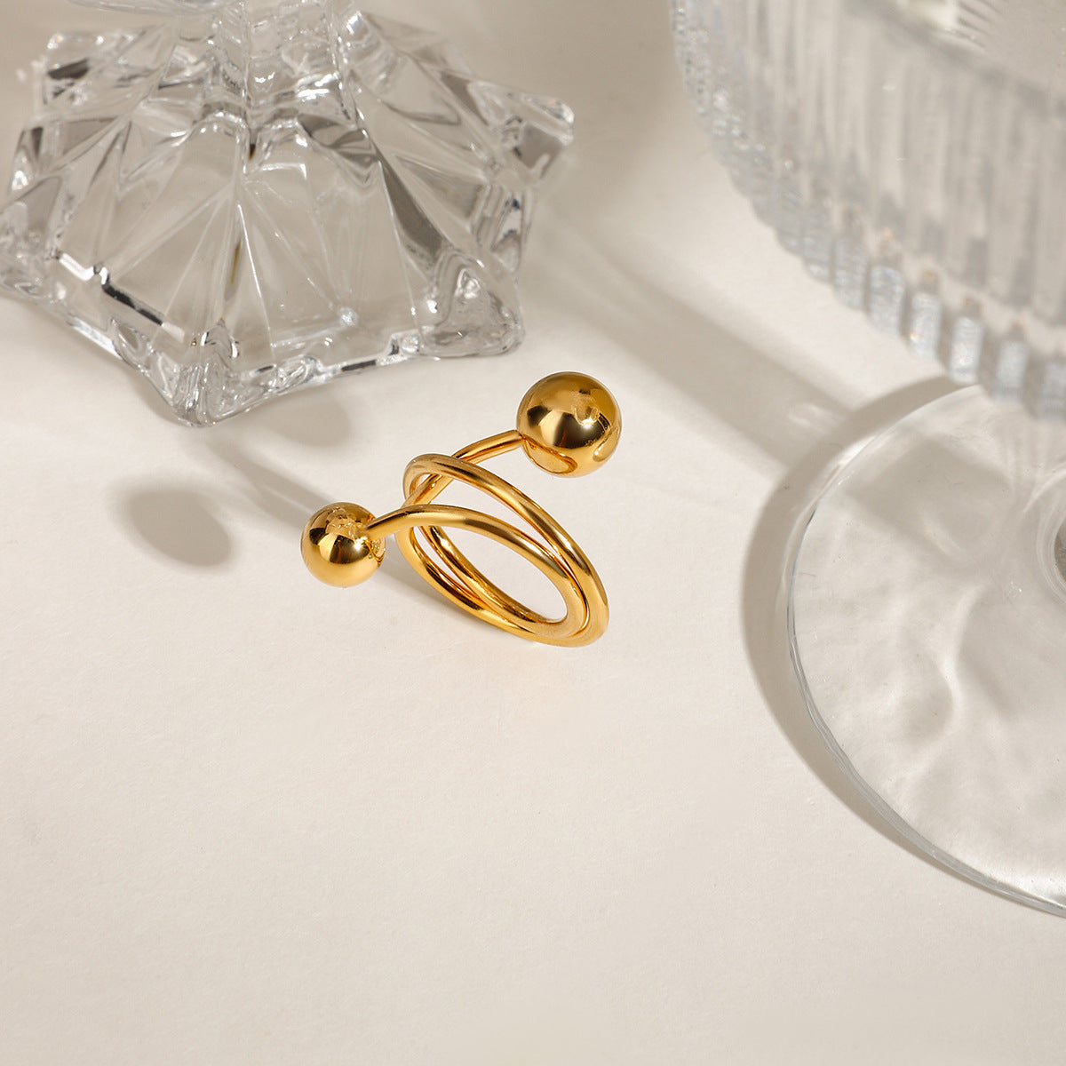 A practical, versatile and niche design 18K gold non-fading stainless steel small round ball opening ring