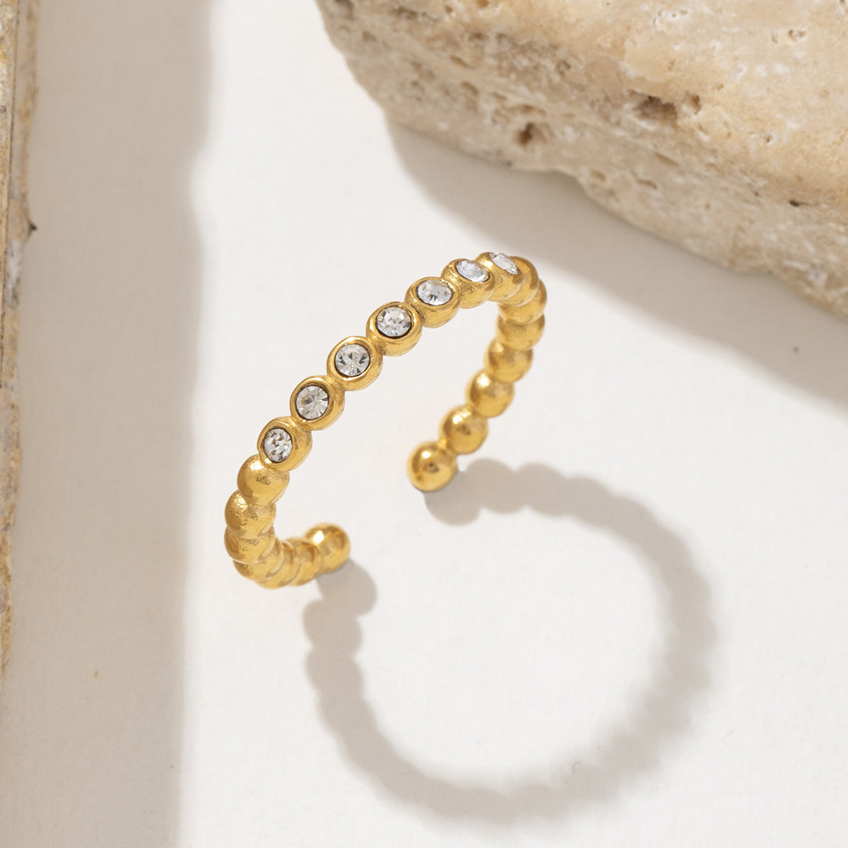 A unique and simple design, practical and versatile, stainless steel diamond-encrusted round bead opening ring