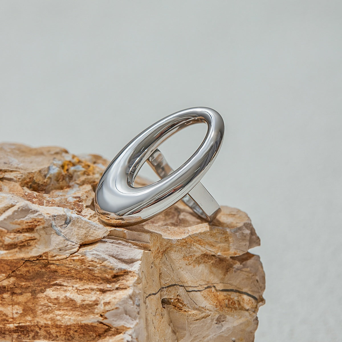 A fashionable, simple and niche design stainless steel geometric oval hollowed-out ring that does not fade