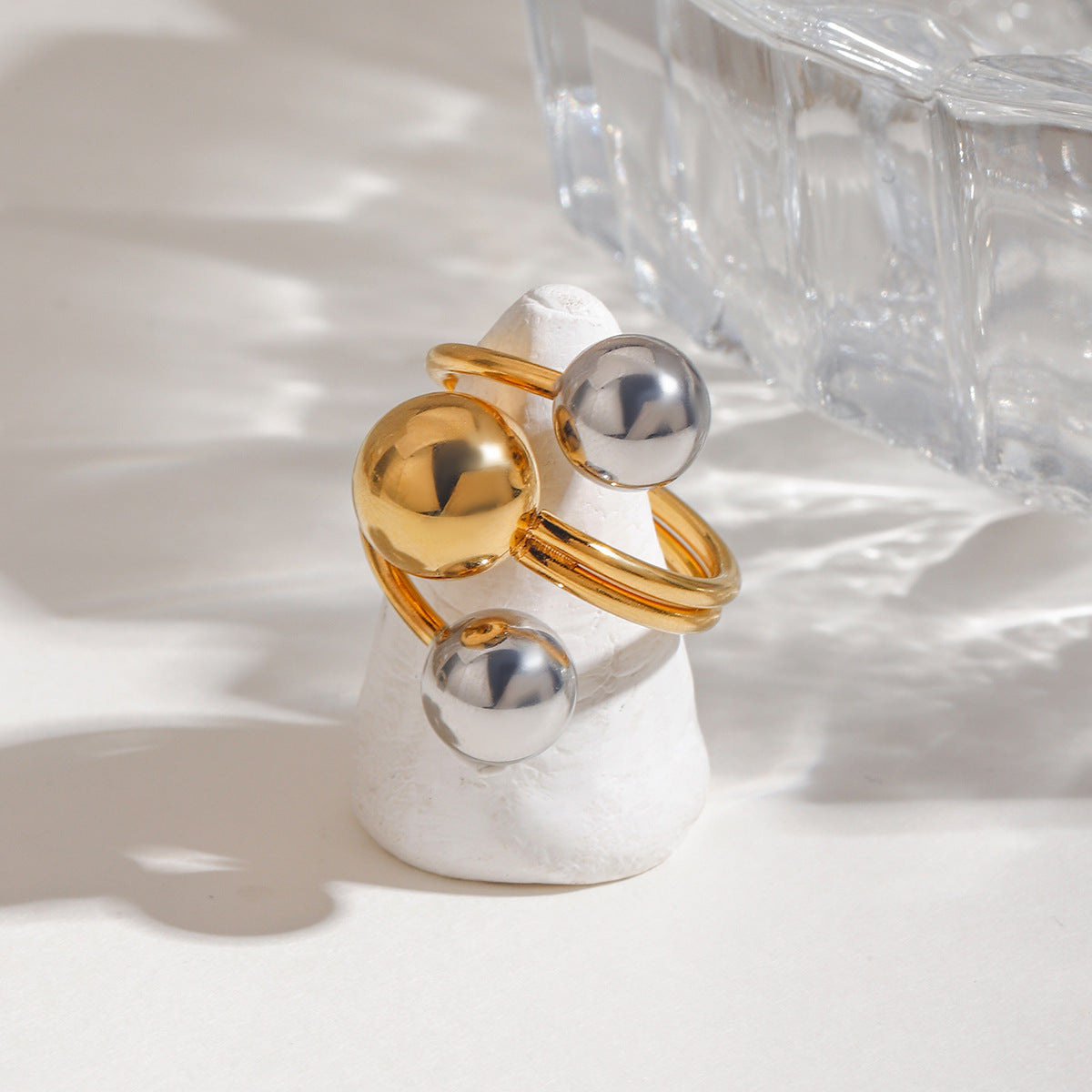 Stainless steel, gold and silver color-matched three-layer line steel ball open ring