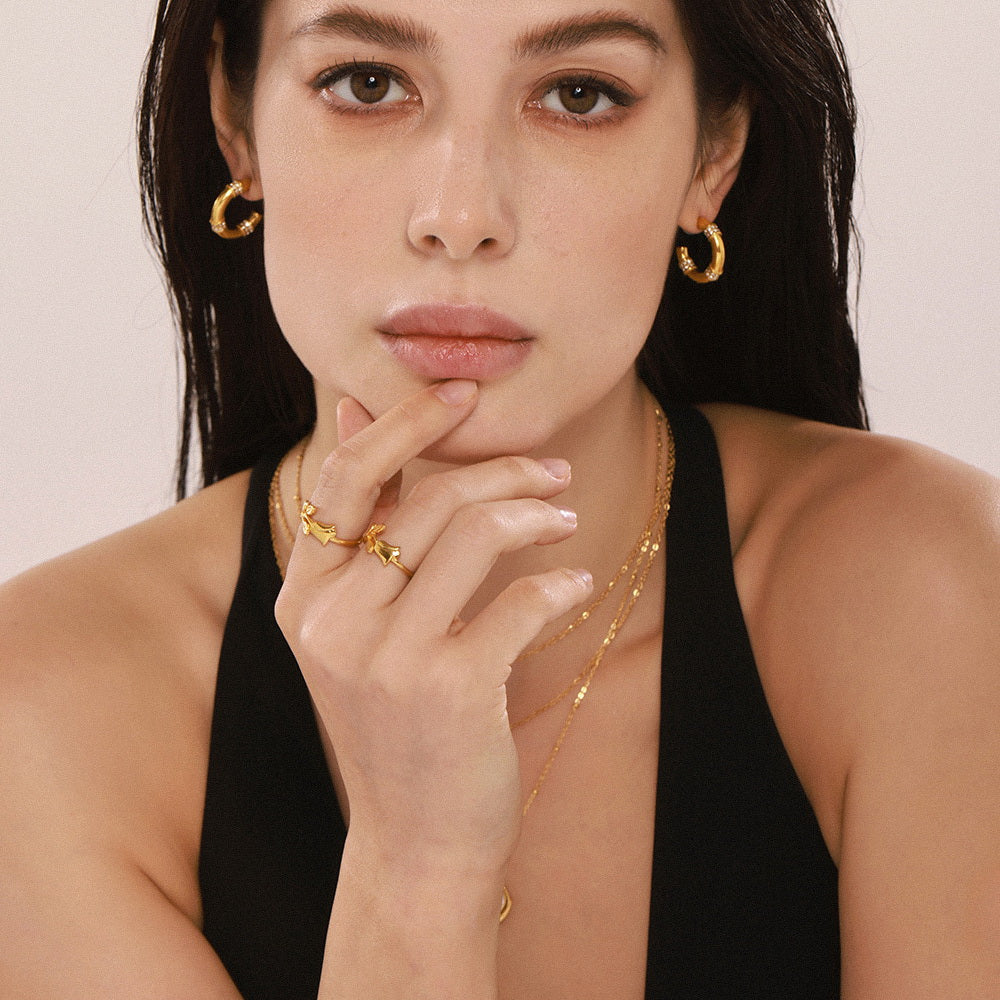 A simple, fashionable, individual and niche design stainless steel gold-plated tulip flower opening ring