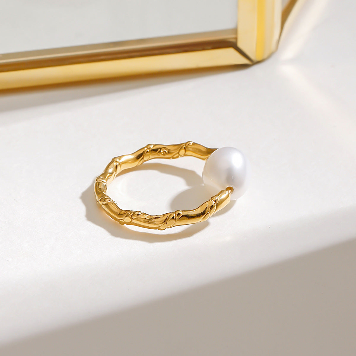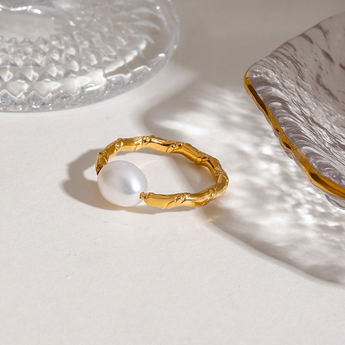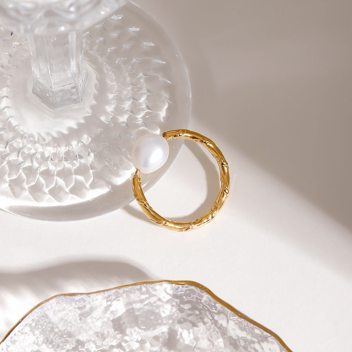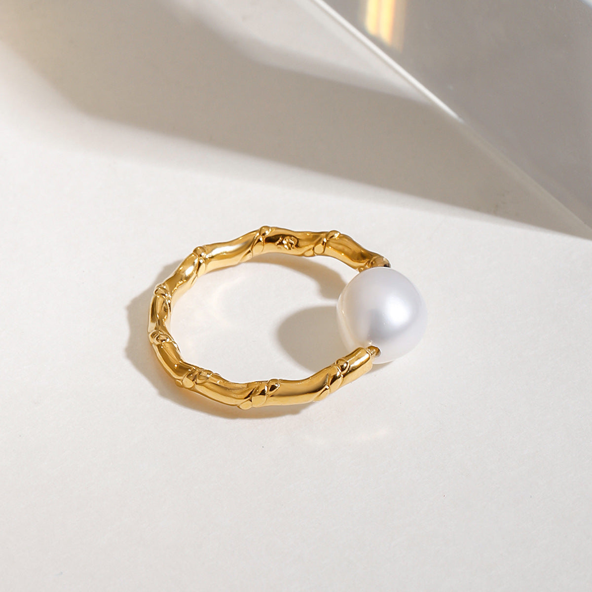 A simple and niche design, practical and versatile stainless steel pearl twisted knot open ring