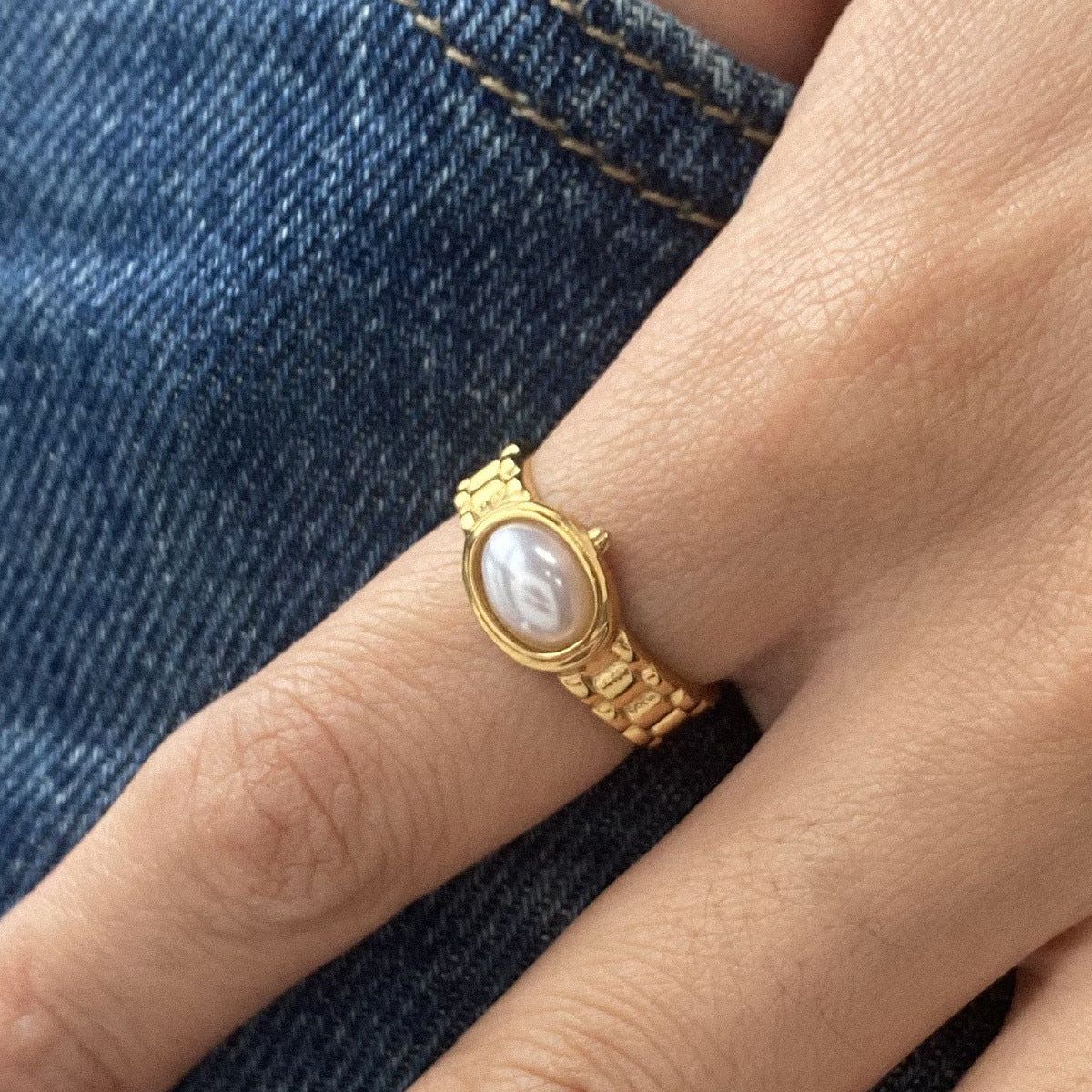 A fashionable, simple, individual and niche design stainless steel pearl ring