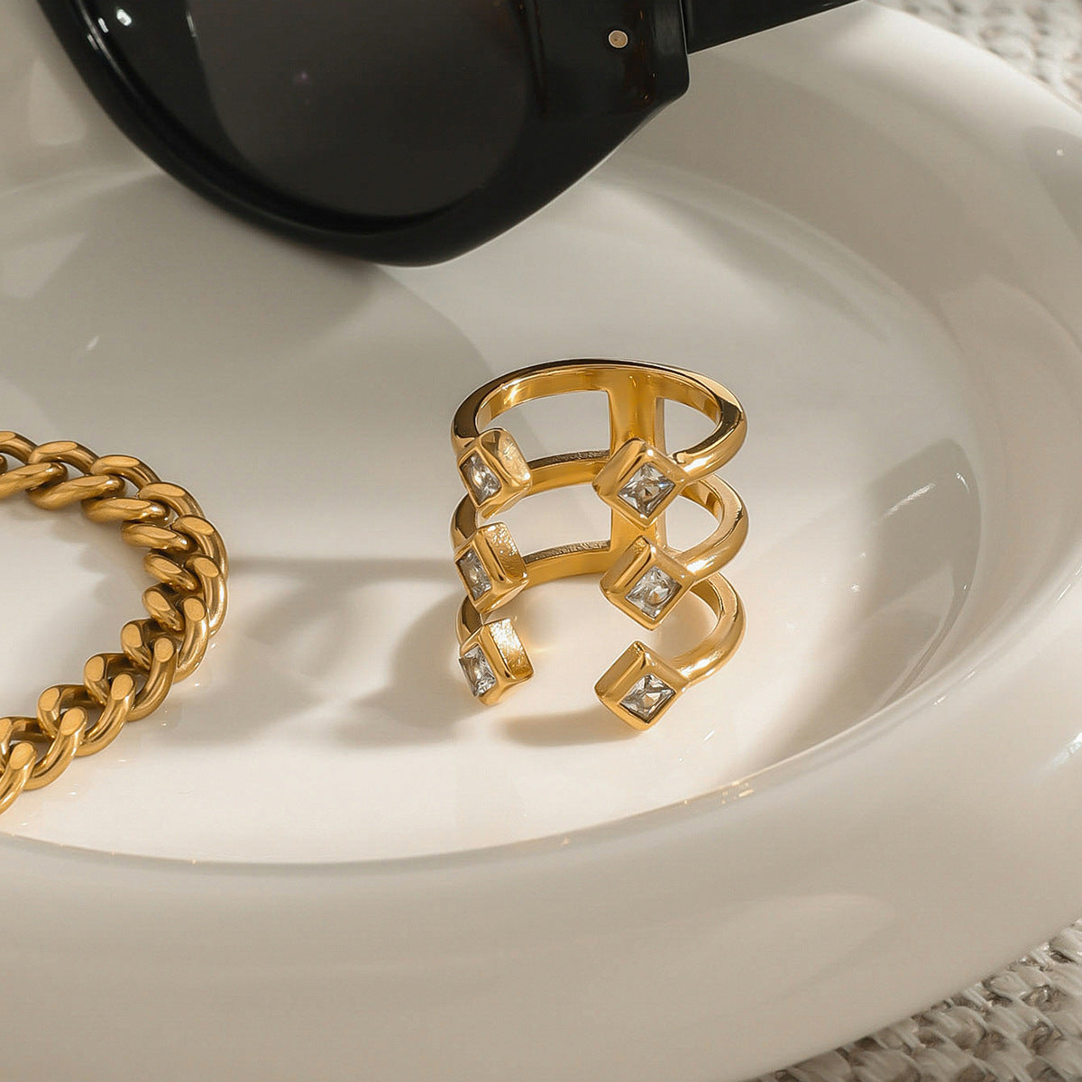 An InS-style, fashionable, practical and versatile stainless steel ring with zirconium wide edges