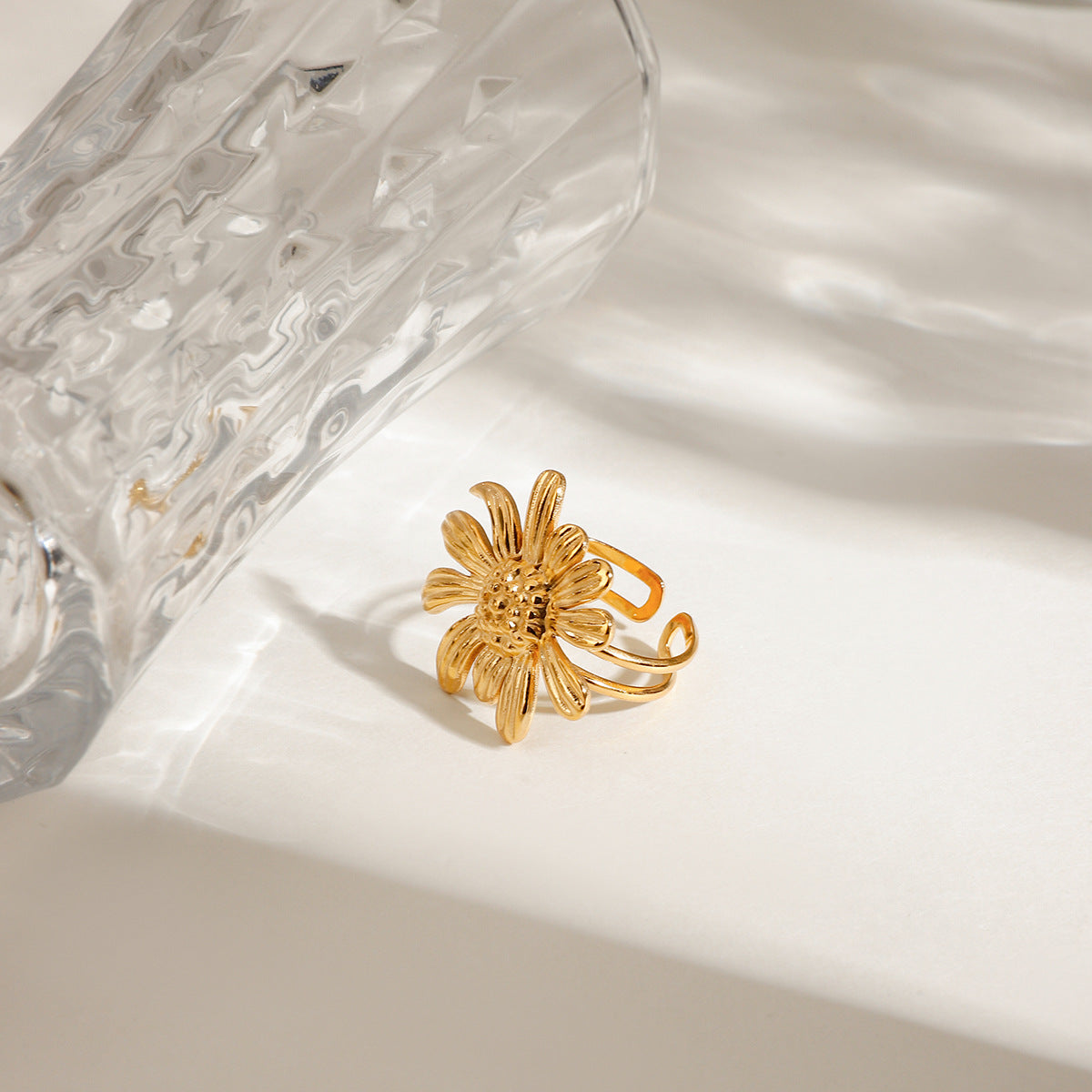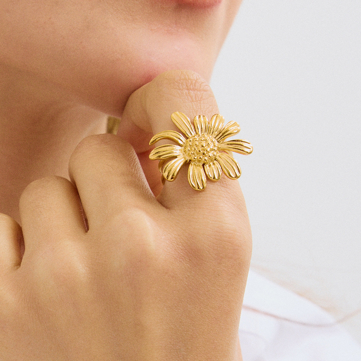 A fashionable, classic, practical, versatile and non-fading stainless steel small Daisy flower opening ring