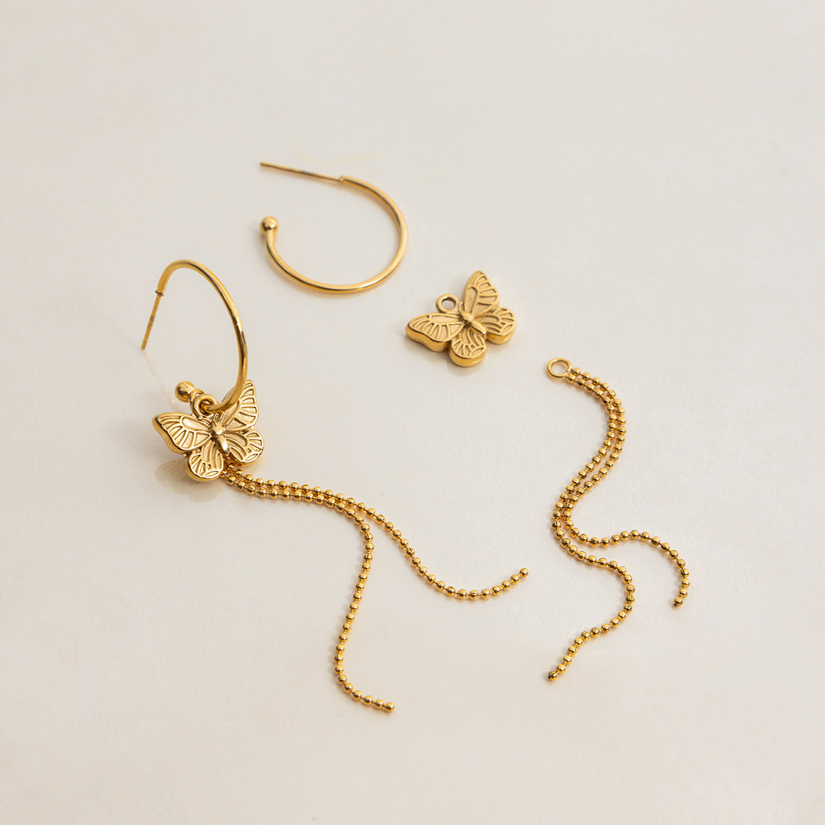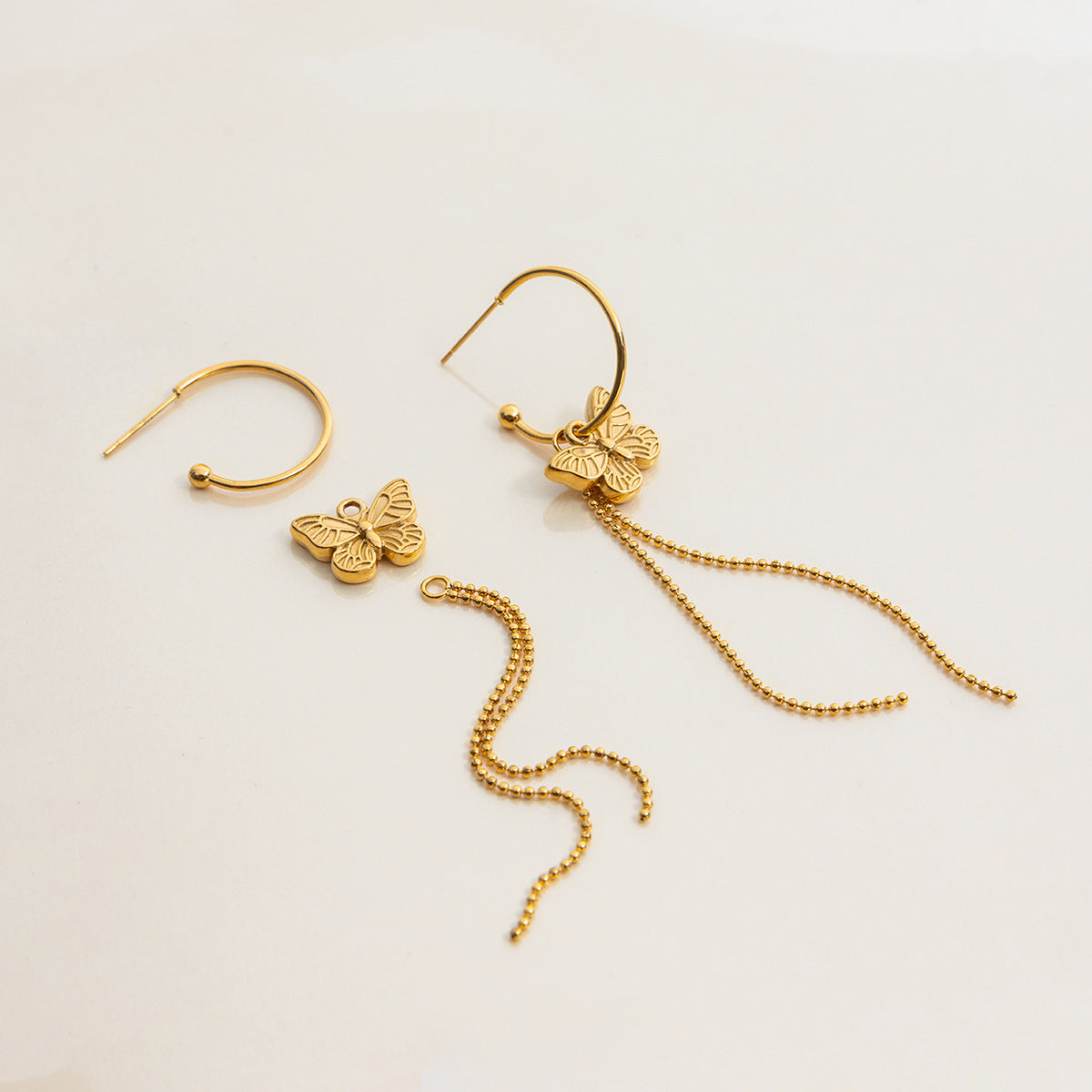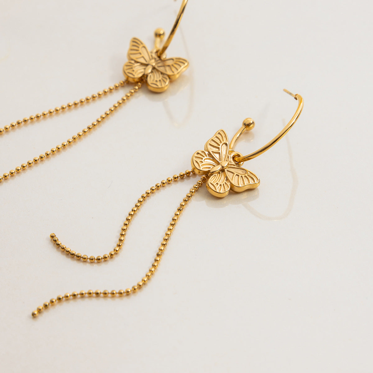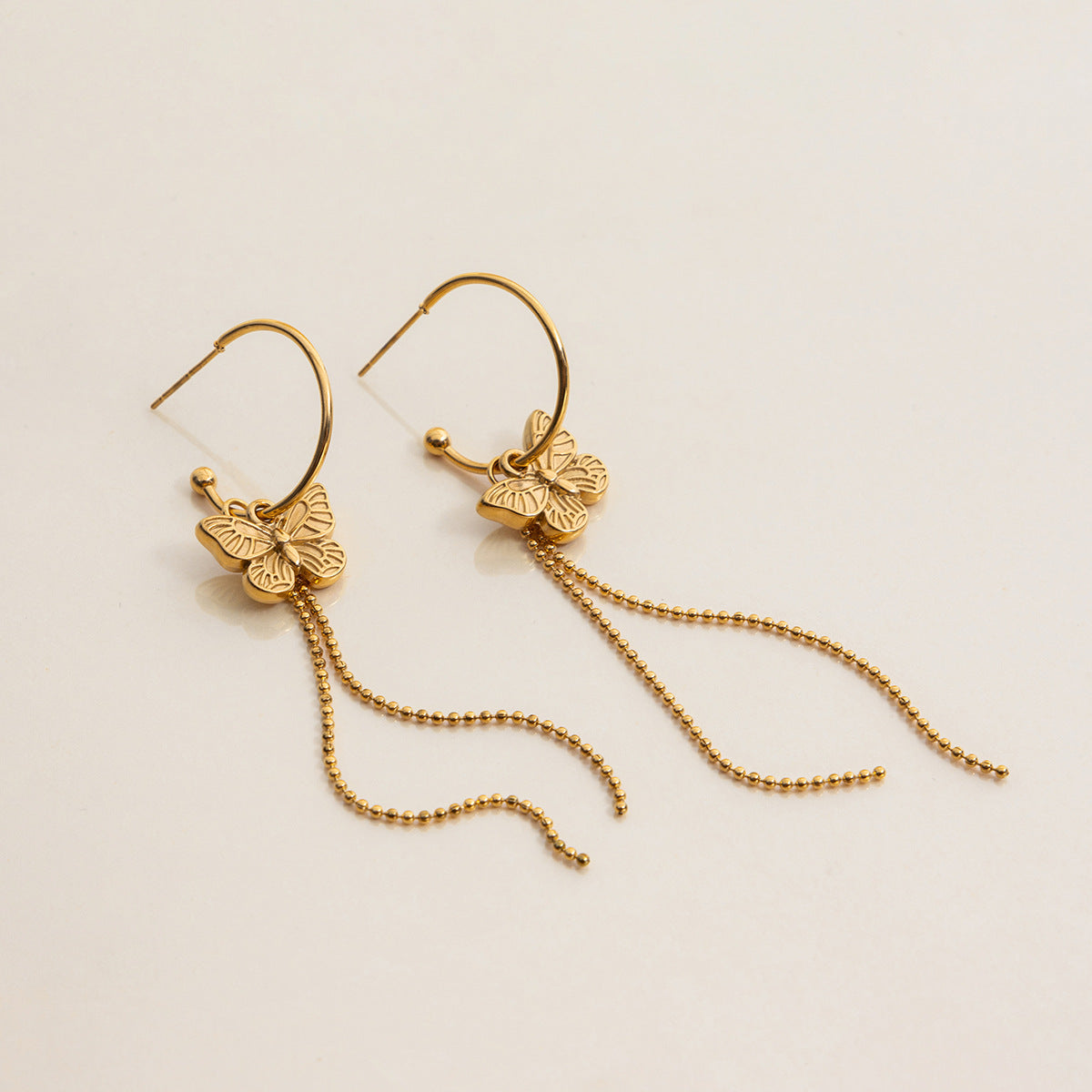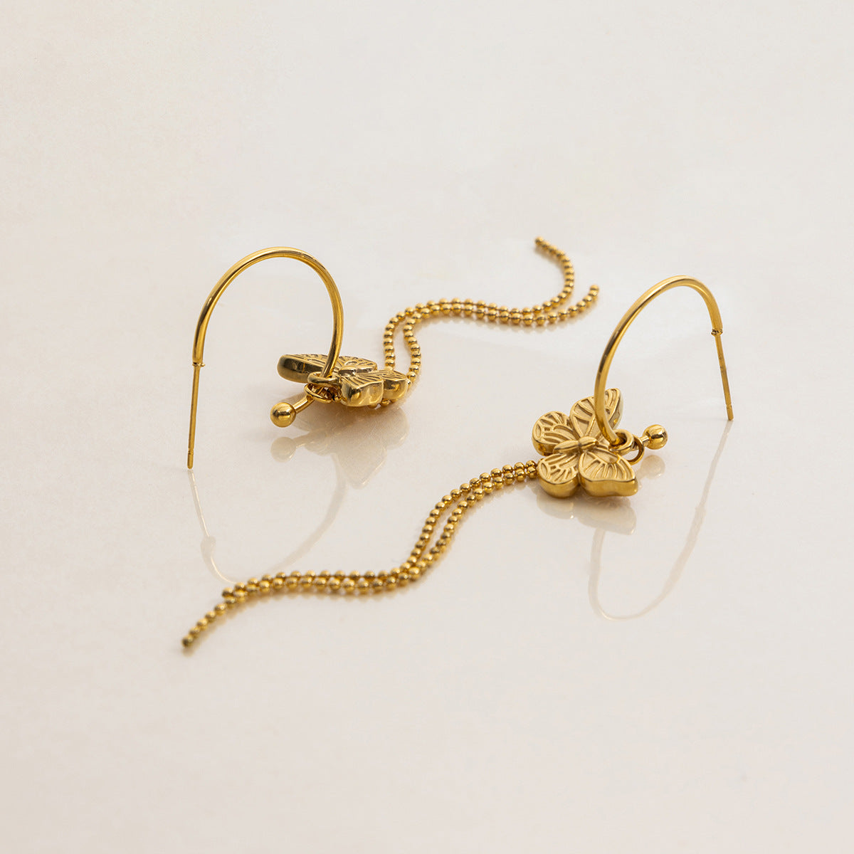 Fashionable and design-savvy Bohemian style 18K gold stainless steel bow tassel C-shaped earrings