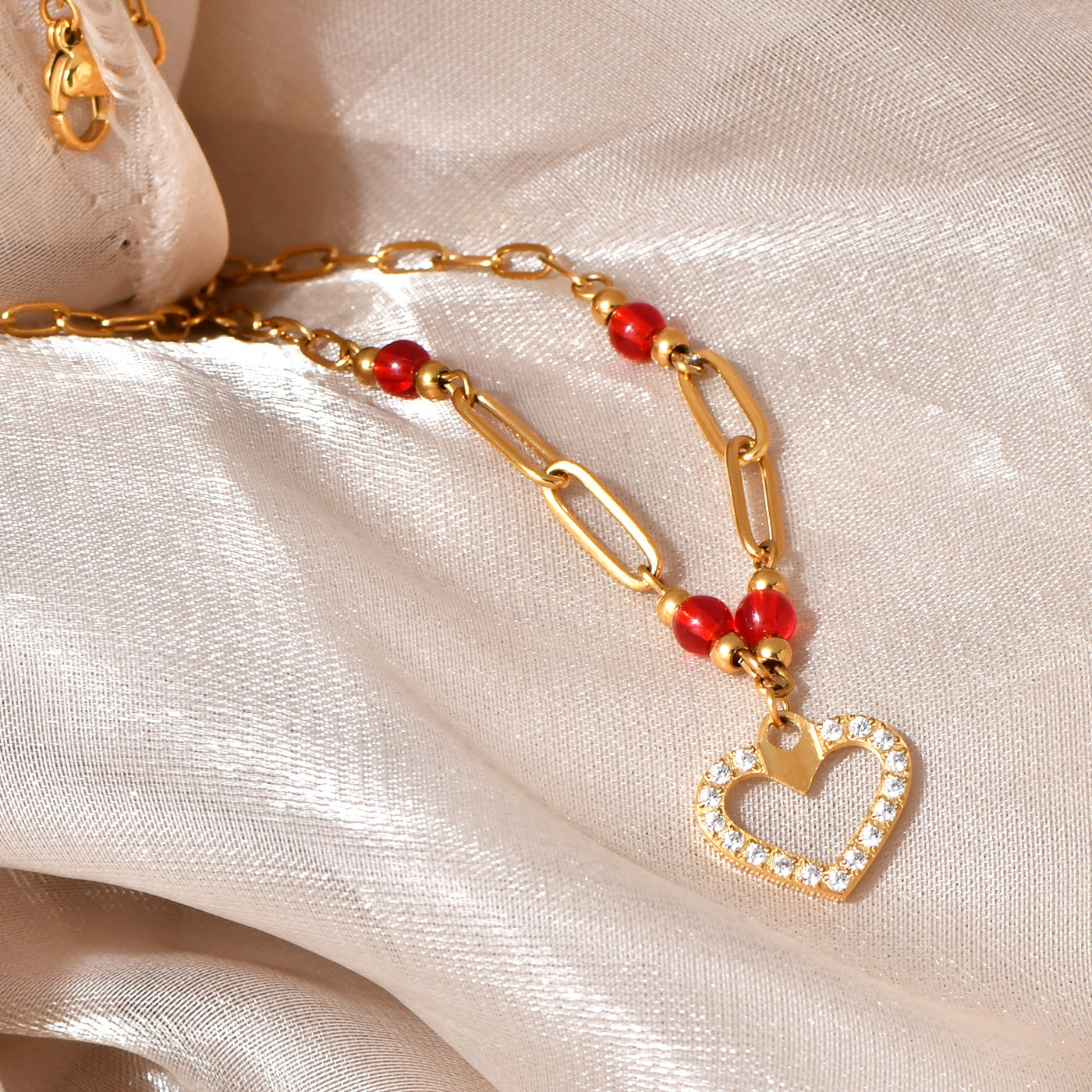 A fashionable, simple and elegant, practical and versatile 18K gold stainless steel chain spliced heart-shaped pendant...