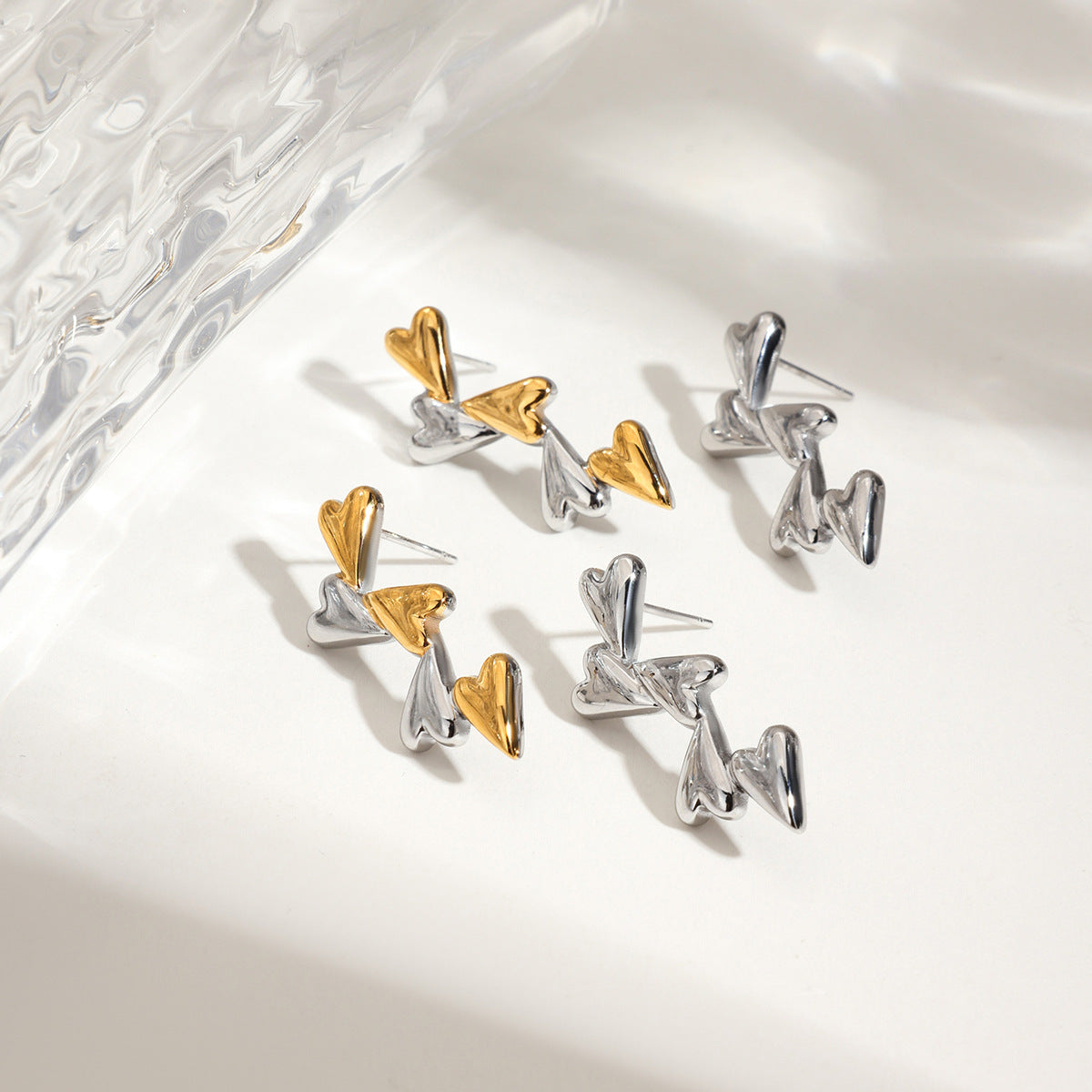 18K gold, stainless steel, gold and silver color-matched heart-shaped earrings