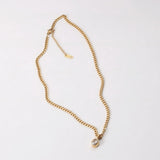 A practical, versatile and elegant 18K gold stainless steel oval zircon pendant thick chain necklace
