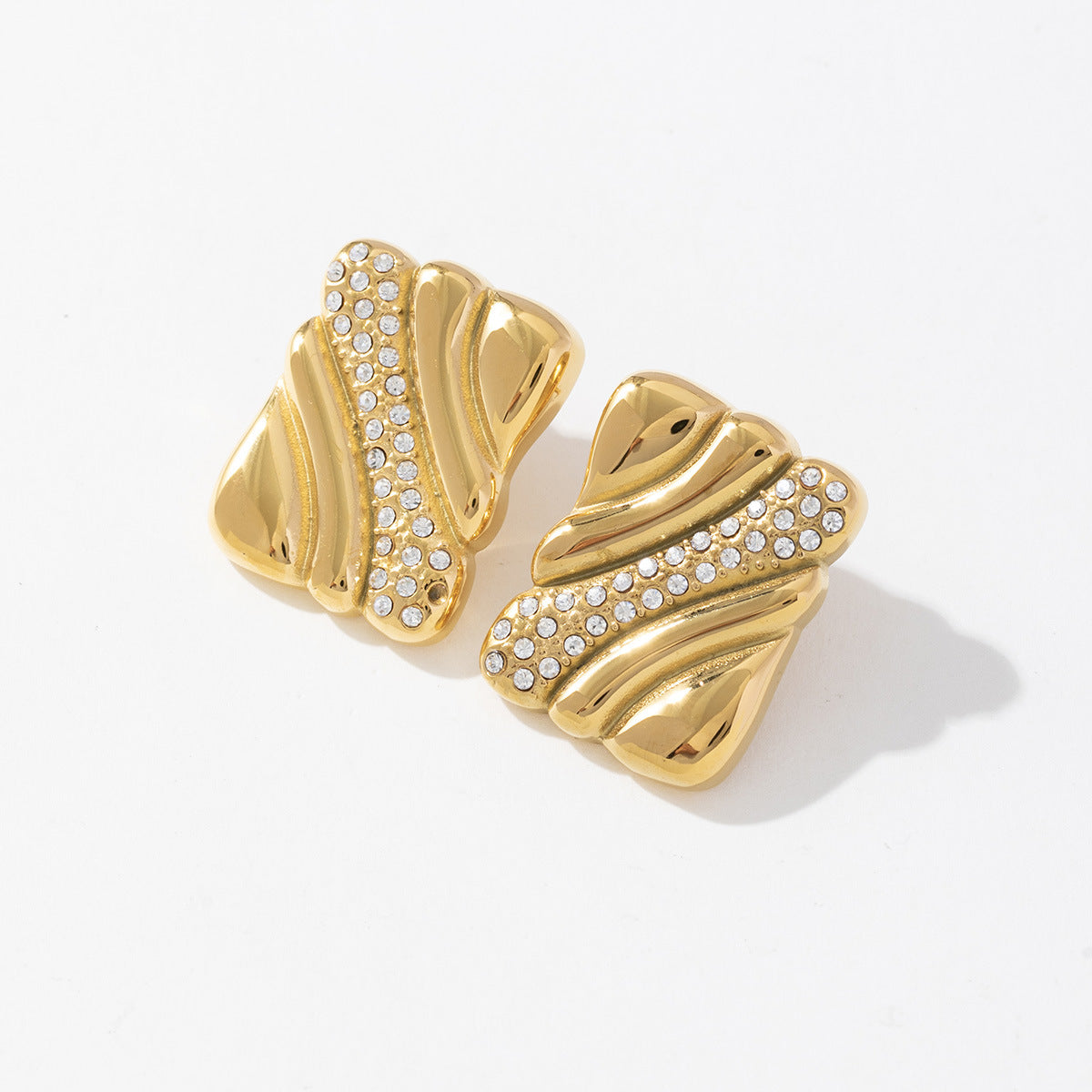 18K gold stainless steel rectangular earrings with zirconium texture inlaid in gold