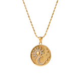 18K gold stainless steel Sun, Moon and diamond set pendant necklace
