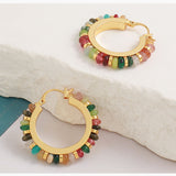 Colored vintage circular beaded natural stone earrings, retro fashion, light luxury and high-end ear buckle earrings
