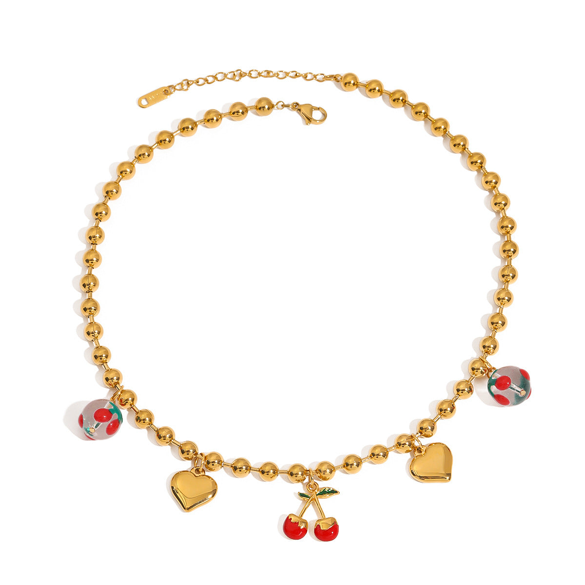 A fashionable and sweet summer casual, light luxury and high-end feel, non-fading stainless steel heart-shaped cherry pendant necklace